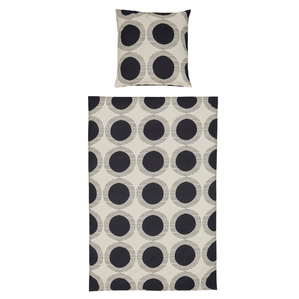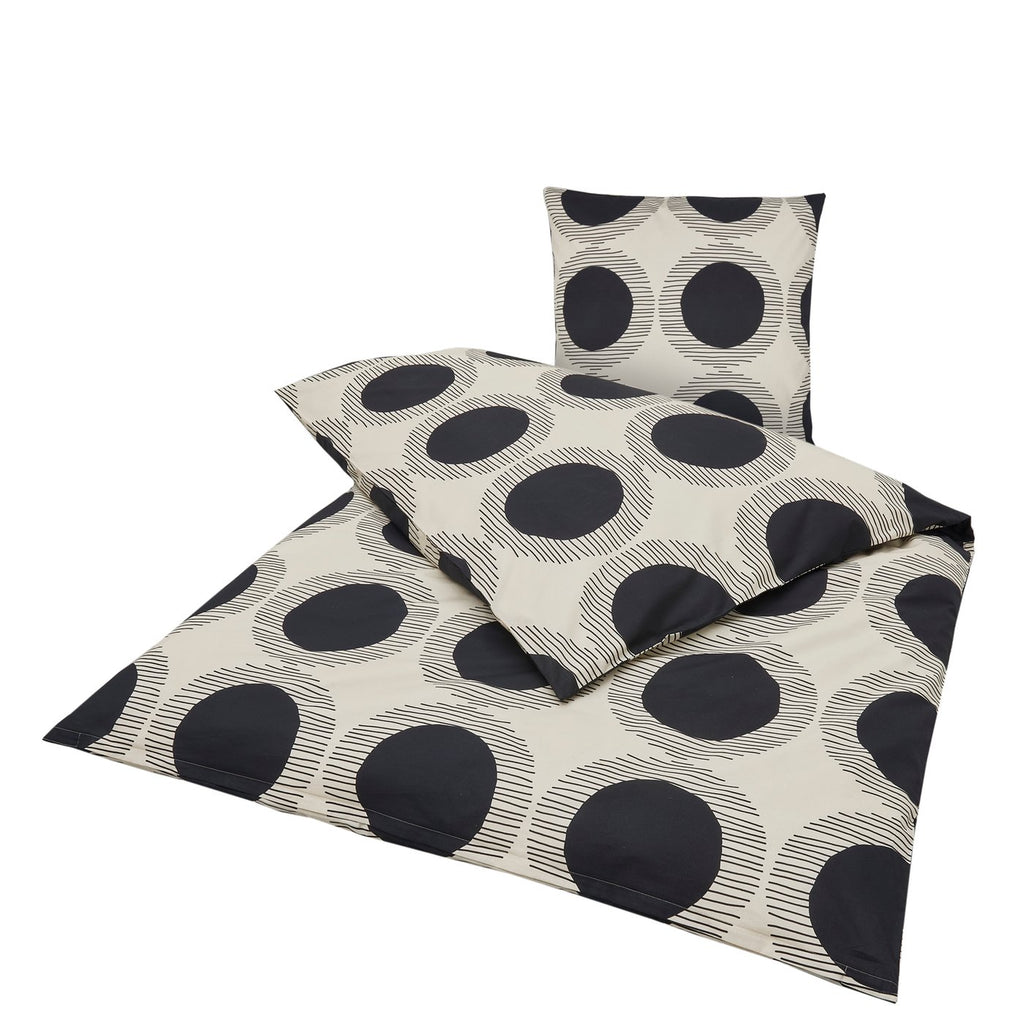 Die Bettwäsche Kaylino Circa vereint modernes Design mit zeitloser Eleganz und bringt stilvolle Akzente in jedes Schlafzimmer. Das ausdrucksstarke geometrische Muster aus schwarzen Kreisen auf cremeweissem Grund wirkt ruhig und zugleich trendbewusst. Inspiriert von urbanen Wohntrends verleiht diese Bettwaesche dem Raum eine klare Struktur und eine angenehme Wohnatmosphaere. Die matte Oberflaeche unterstreicht den hochwertigen Look und fuehlt sich angenehm weich auf der Haut an. Ideal fuer alle, die modernes Wohnen lieben und Wert auf Komfort und Design legen.