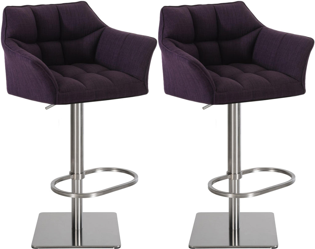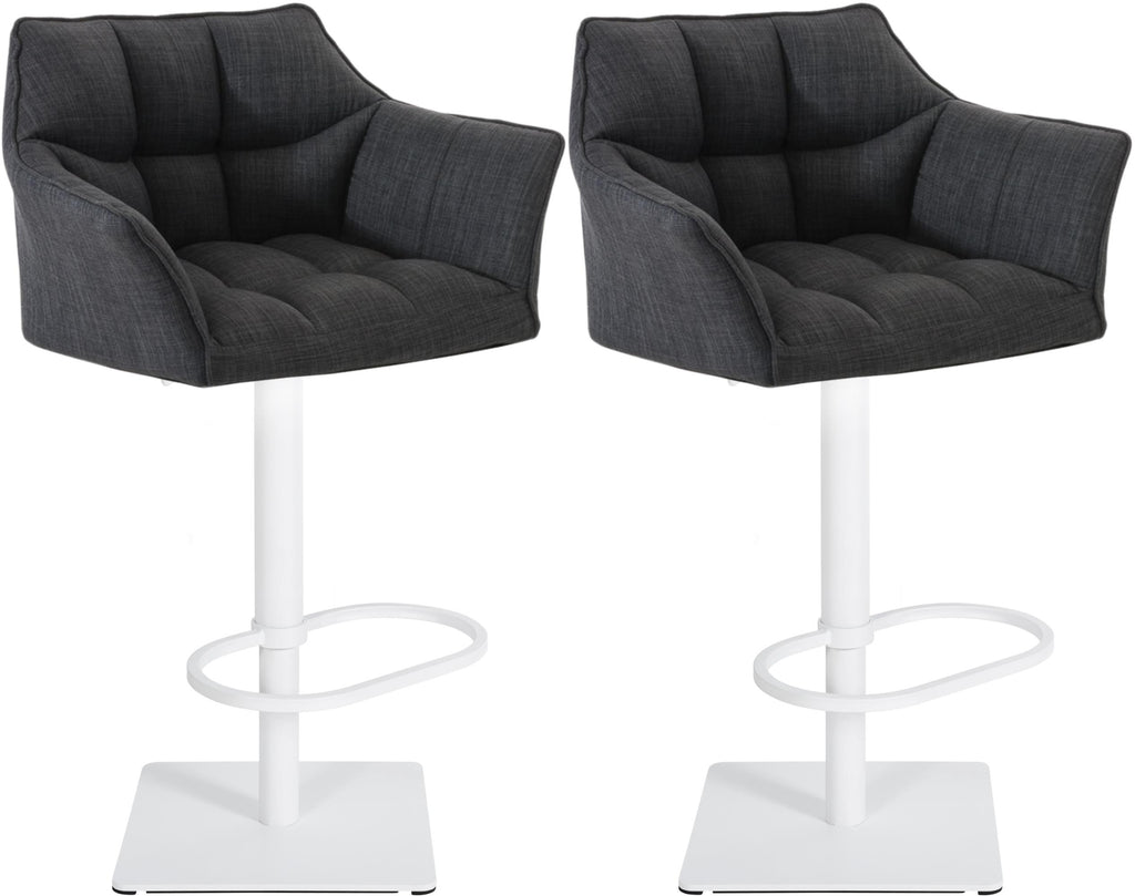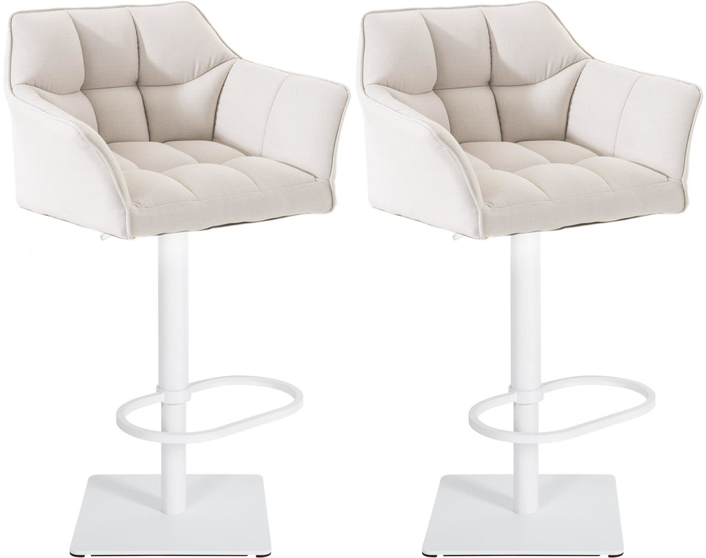 The Damaso set of two bar stools combines elegance with seating comfort. With their upholstered fabric covers, these stools are ideal for the kitchen, living room, dining room, and home bar.