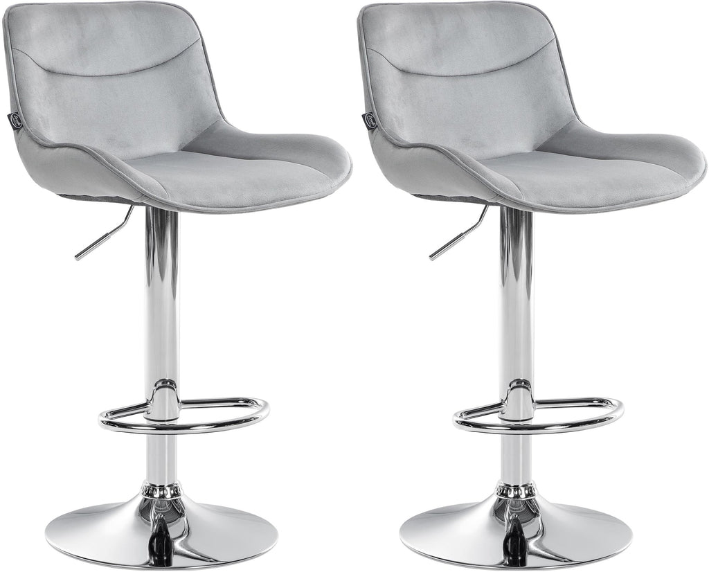 The metal frame and the trumpet base ensure stability and durability. The integrated footrest adjusts to the seat height and offers additional support. The velvet cover gives the bar stool an elegant look and a comfortable seating feel. Floor protectors protect against scratches.