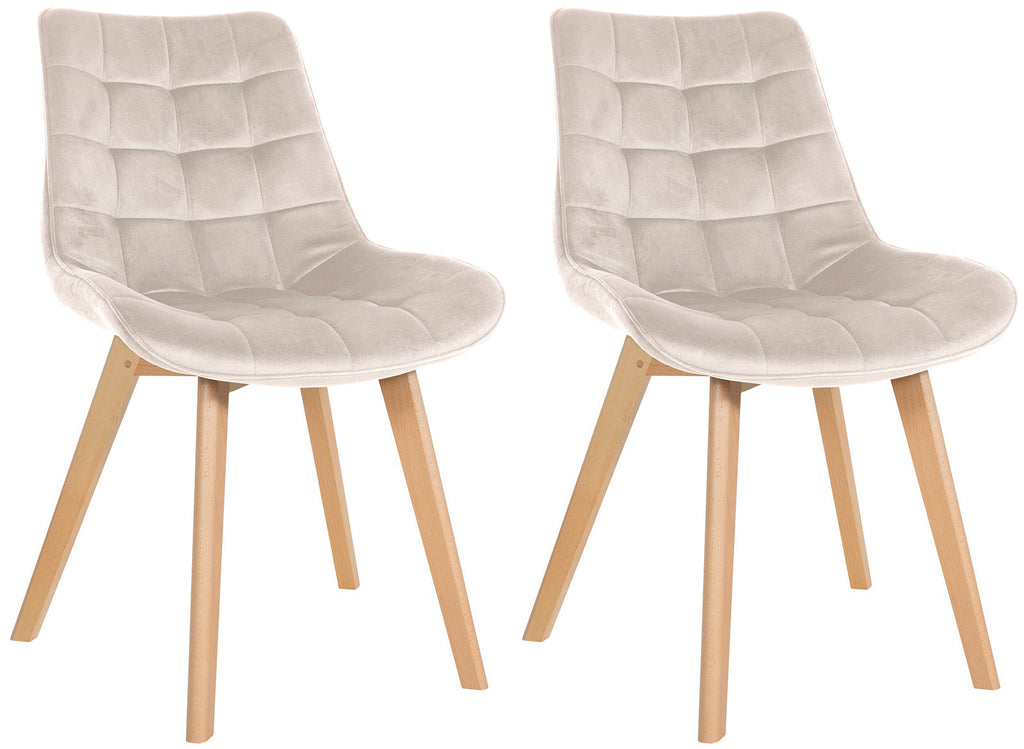 The set of 2 Brook chairs with velvet cover perfectly enriches modern rooms and attracts attention in every room. With its comfortable backrest and pleasant padding, it also enables long-lasting seating comfort. Supported by a contemporary 4-foot wooden frame, the chair looks advantageous on every occasion. There are also floor protectors on the feet to protect the floor from scratches. Thanks to the use of easy-care materials, the dining chair can be easily cleaned at any time.