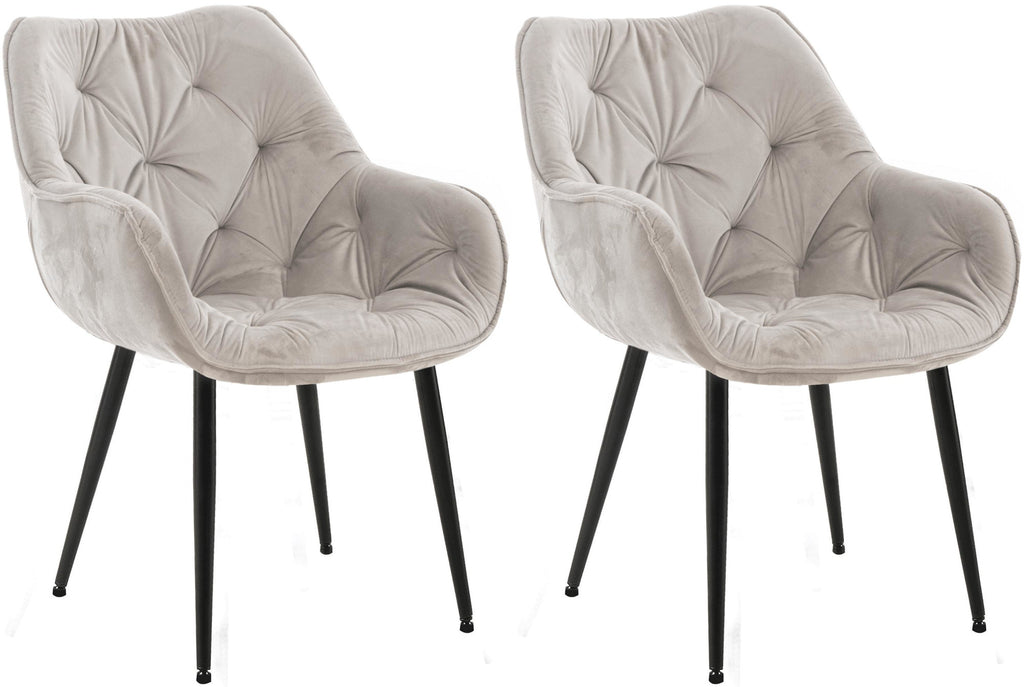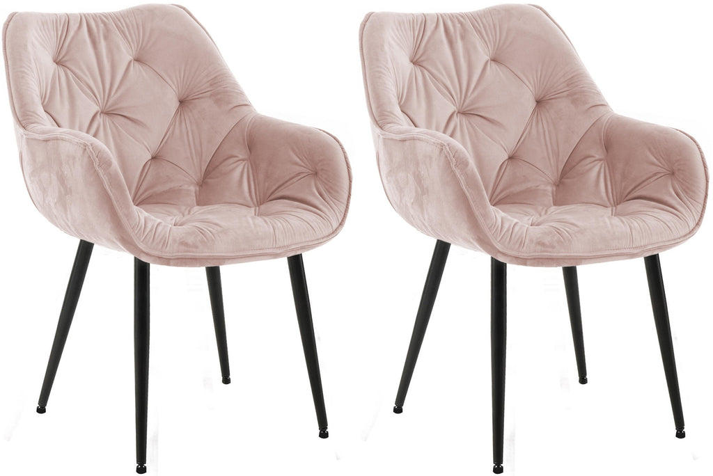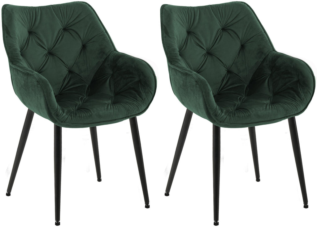The set of 2 Tanna velvet chairs combines a sense of style and seating comfort. The armchair-shaped seats impress with their modern look and comfort, which is made possible by raised armrests and padded backrests. A contemporary 4-foot metal base gives the set the necessary stability, while floor protectors under the feet prevent scratches and marks on the floor. The use of easy-care materials allows each dining chair to be cleaned effortlessly and quickly.