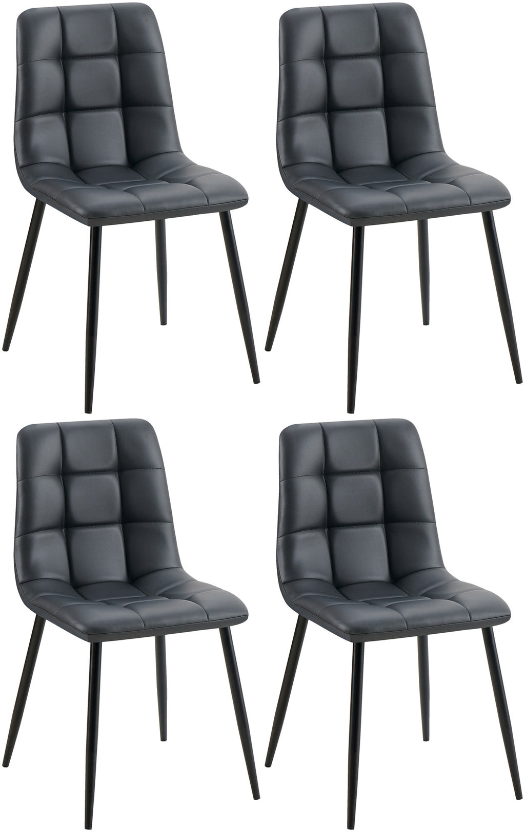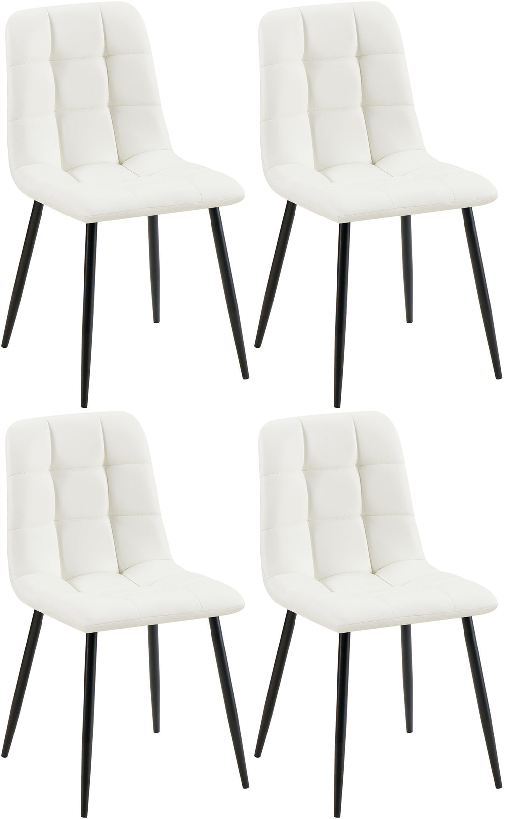 The Antibes dining room chair combines high seating comfort with a modern, contemporary look. The key to a comfortable seat is the pleasant padding on the seat and backrest. Both the seat shell and the backrest are covered with an easy-care and robust artificial leather cover with a fashionable quilted pattern. The chair legs are made of a matt black metal frame. The maximum load capacity is up to 150 kilograms. Floor protectors prevent damage to sensitive floors.