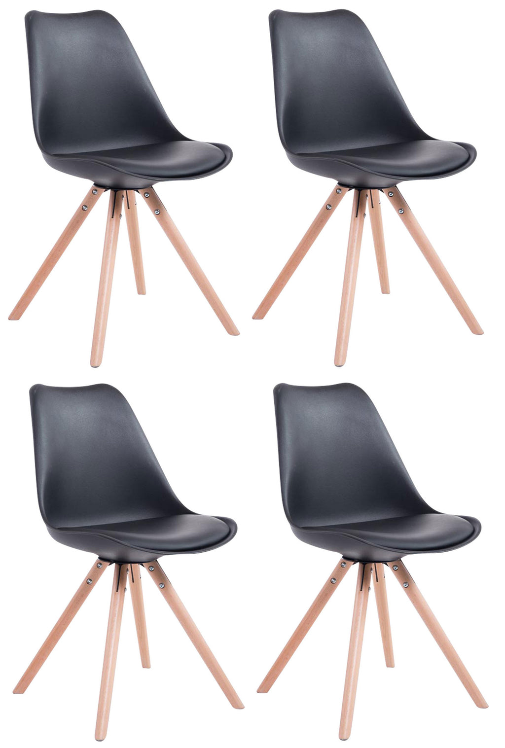 Visitor chairs Toulouse Round - Let your visitor room appear in a new splendor! These visitor chairs give any room an exclusive look. The comfortable visitor chairs not only impress with their excellent seating properties, but also with the exciting material mix of plastic, artificial leather and wood. The seat shells are made of sturdy plastic. The pleasant and comfortable padding with faux leather cover allows you to sit comfortably even for a longer period of time. On the 4-foot wooden base, these visitor chairs look great on any occasion.