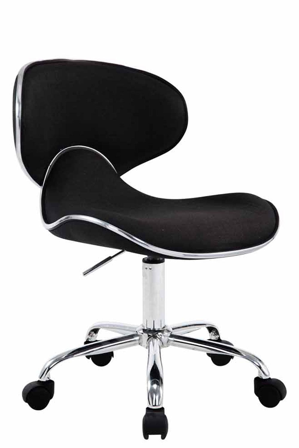 The rolling stool impresses with its comfortable padding and a curved look. The delicate seat is covered with a fabric cover and thanks to the continuously adjustable seat height, ergonomic sitting is guaranteed. It stands securely on five smooth-running castors and a chrome-look metal frame. Thanks to its practical design, it is also suitable for smaller rooms and can be used flexibly. No matter whether it's hard or carpeted floors - you can always roll easily and loosely across the floor.