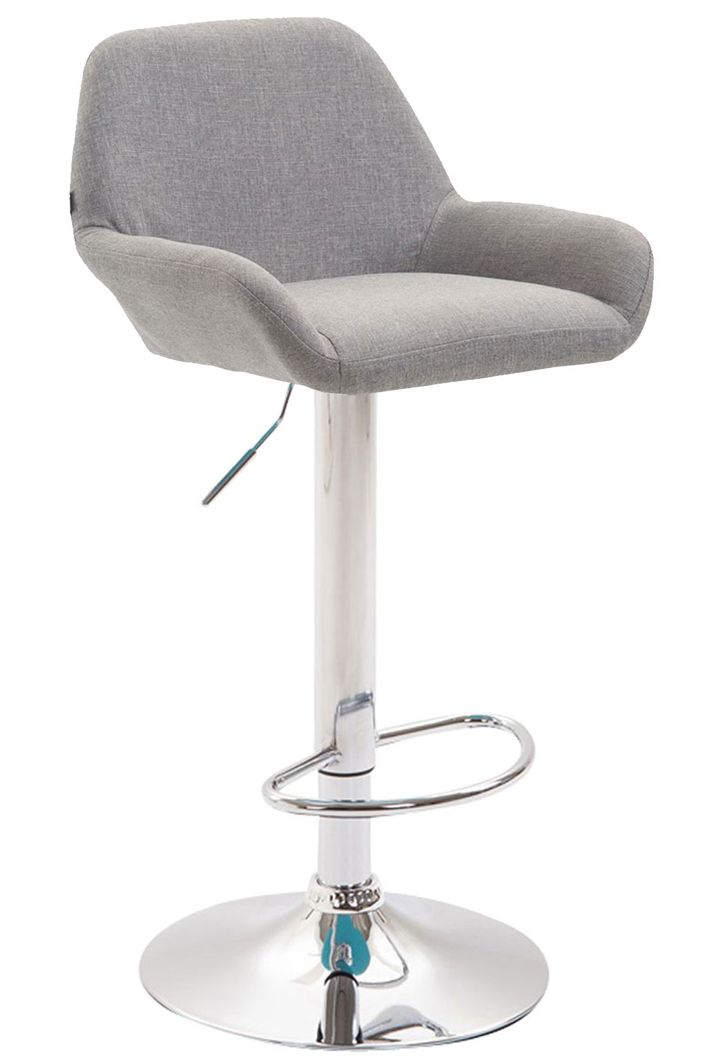 Bar stool Braga fabric - take a seat in style This modern bar chair is characterized by its timelessly chic design. The elegant seat promises a fantastic sitting experience, because the padded backrest gives your back the support you need to sit comfortably for hours. The seat is covered with fabric and is available in different colors depending on your wishes. The frame is made of metal, and the trumpet base also offers high stability. The curved footrest does not let your feet hang. The counter stool is infinitely height-adjustable using a gas lift and the seat can be rotated through 360°, making it ideal for any counter. All you have to do is choose your individual bar stool to suit your ambience.
