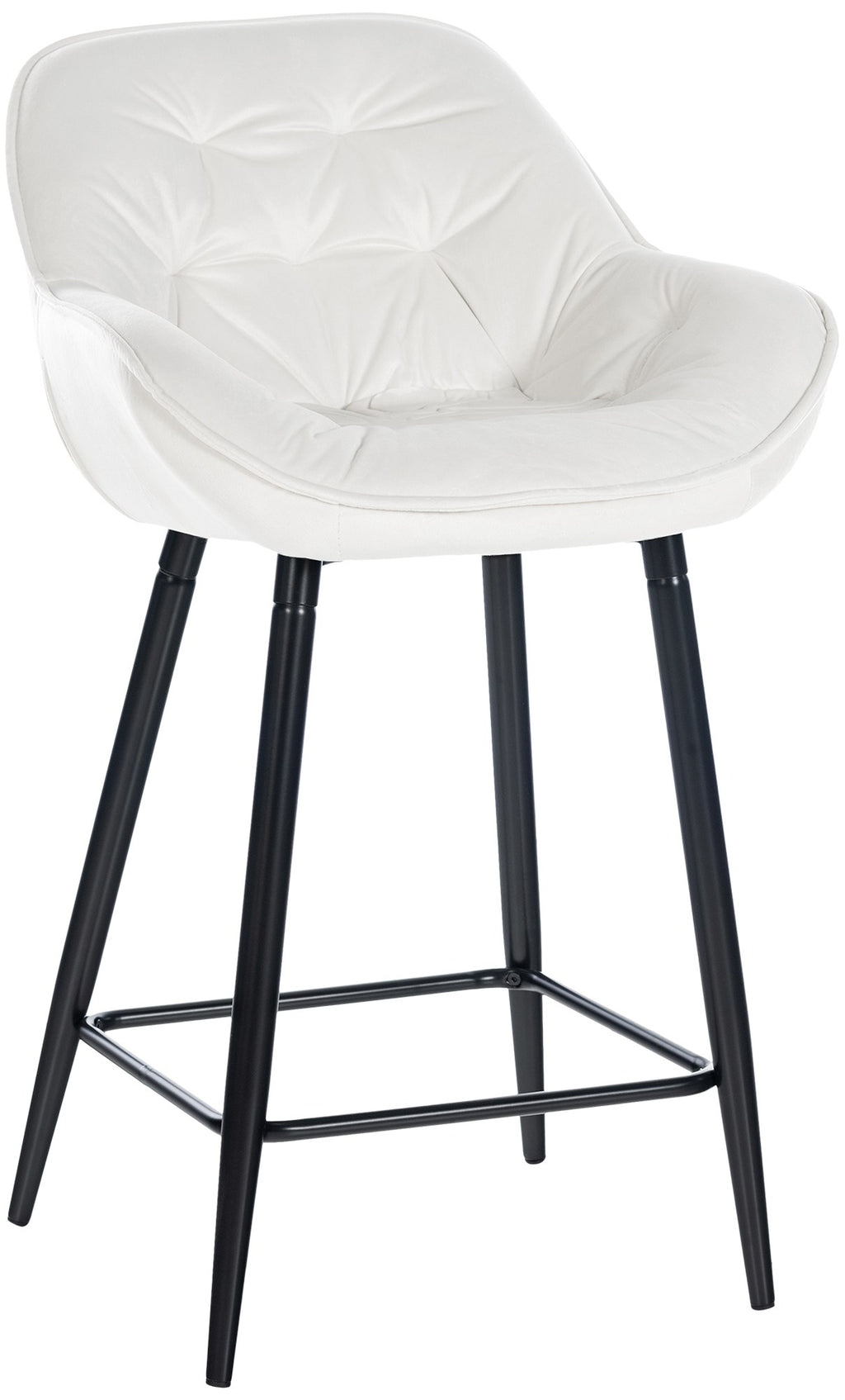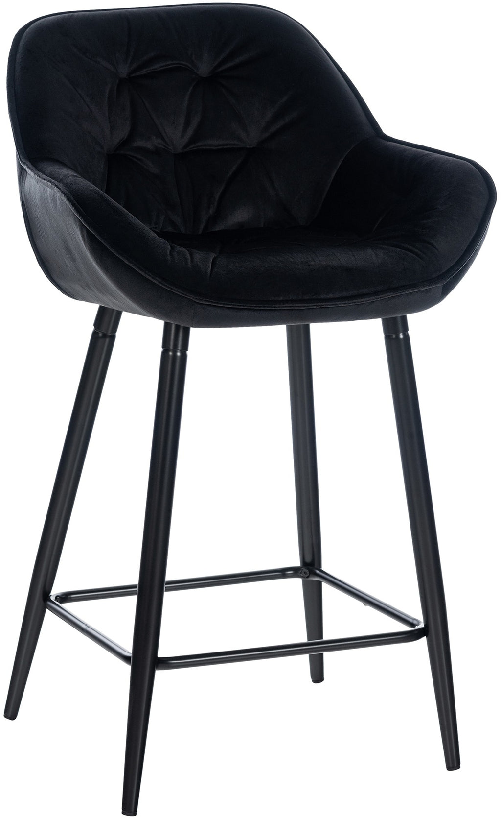 The stool owes its chic appearance to its combination of matt black frame and fashionable cover. The counter chair with quilted velvet cover is available in different colors.
