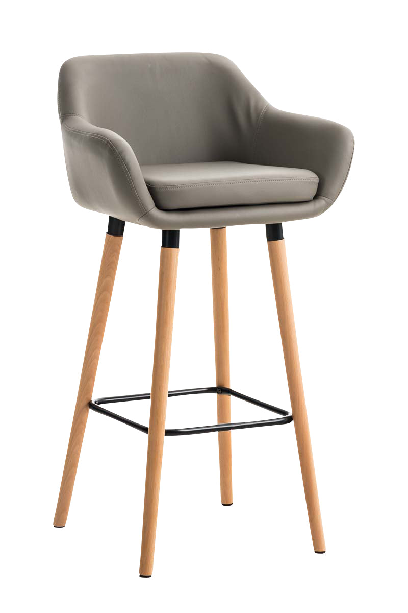 This counter stool gives every bar that certain extra something, designed like a lounge chair, this stool impresses with its look. Thanks to its backrest and shape, comfortable sitting is possible even for several hours. The seat shell with faux leather cover and removable cushion is easy to clean and the Velcro fastener ensures that the seat cushion does not slip. In addition, the cover of the removable seat cushion can be easily removed using a zipper. The sturdy four-legged frame made of beech wood has a discreet metal footrest and completes the design of this counter stool. An absolute highlight for cozy hours at the bar.