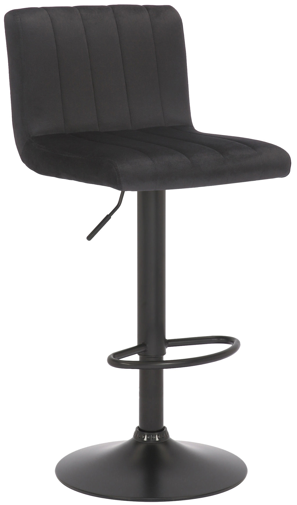 The Jamie bar stool is a real eye-catcher with its vertical quilted pattern. In combination with the matt black frame, the stool fits perfectly into modern rooms.