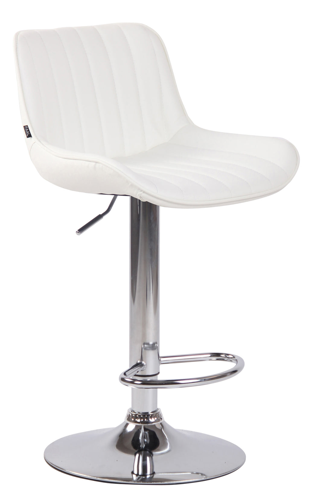 This bar stool gives any room an exclusive look and impresses not only with its excellent seating properties, but also with its modern design. The seat is covered with an easy-care artificial leather cover. Using the gas lift, this model can be infinitely adjusted to the desired height, making it ideal for any counter height. The footrest, which ensures very good seating comfort, is adjustable synchronously with the height of the seat. The seat can be rotated 360° with the footrest. The frame is made of either chrome-look metal, white or black metal. There are also floor protectors under the trumpet base to prevent surfaces from being scratched.