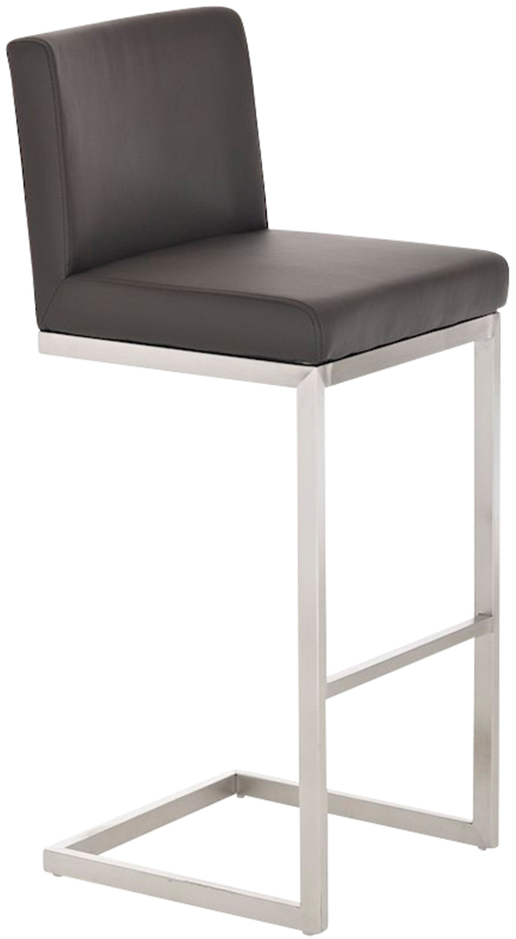 Its sleek, cantilevered frame in brushed stainless steel creates a striking visual effect, and the gentle rocking motion of the seat is perceived as very pleasant. An integrated crossbar serves as a comfortable footrest, while the backrest provides support for the lower back. The seat and backrest are generously padded and covered in a durable, easy-care faux leather.