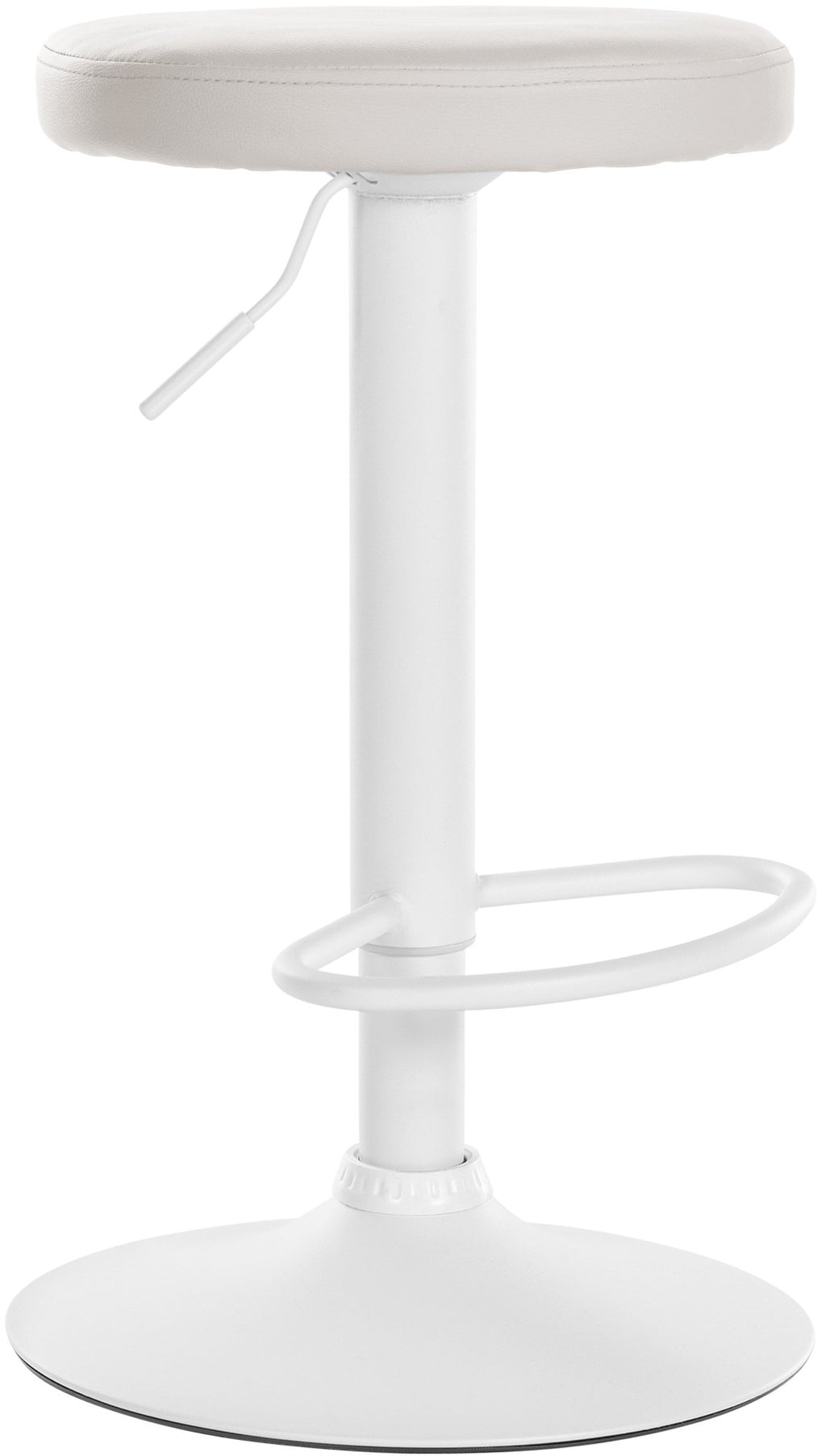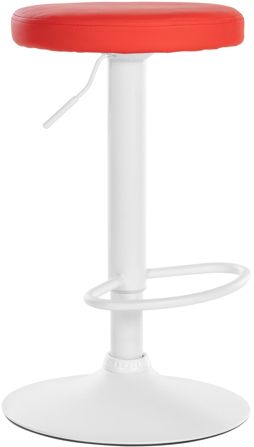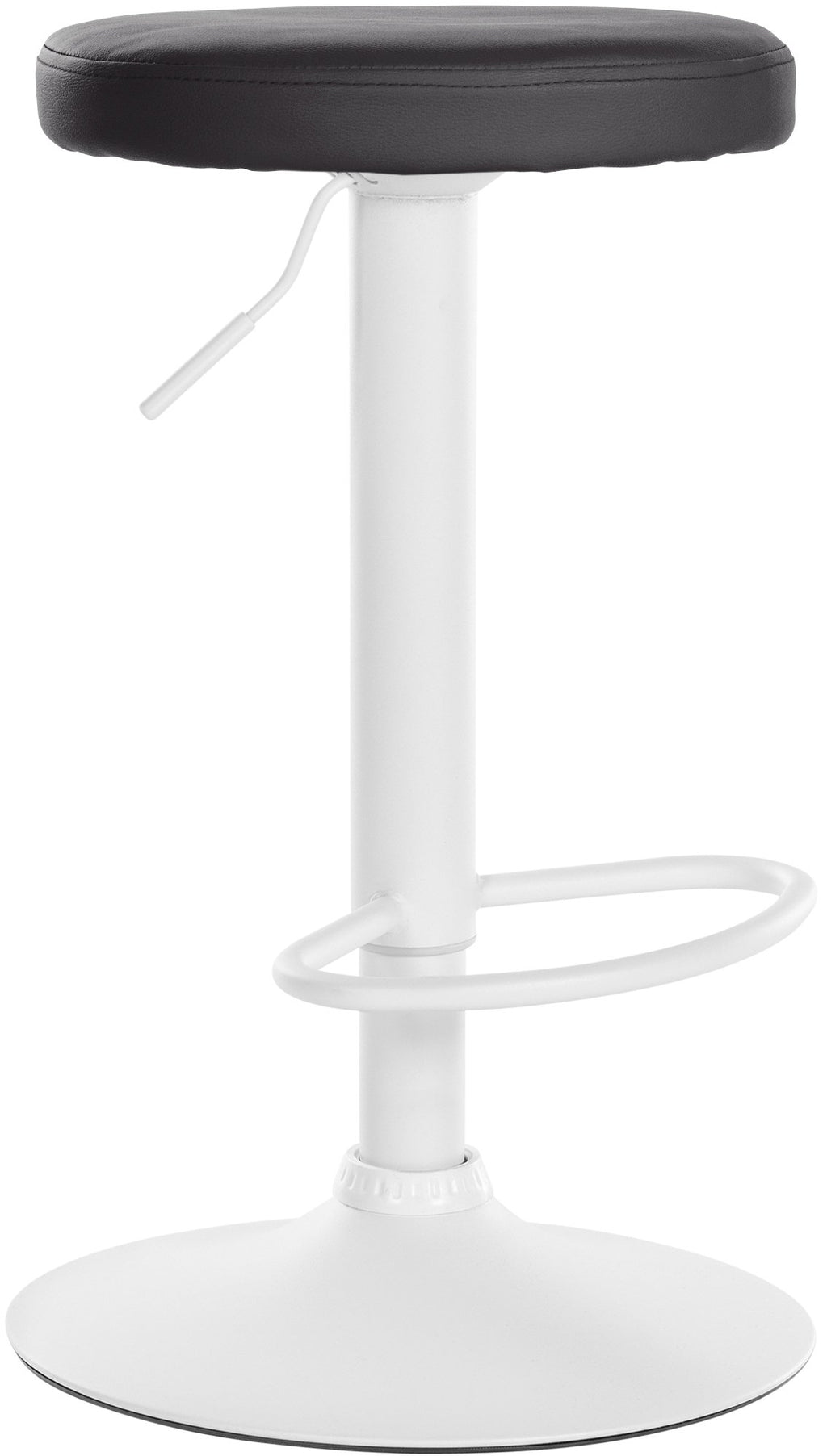 The faux leather cover of the round, padded seat is available in six attractive colors, so you can choose the perfect look for your home. The robust metal frame is available in three attractive versions: matt white, matt black or with a chrome look. An integrated footrest provides additional comfort.