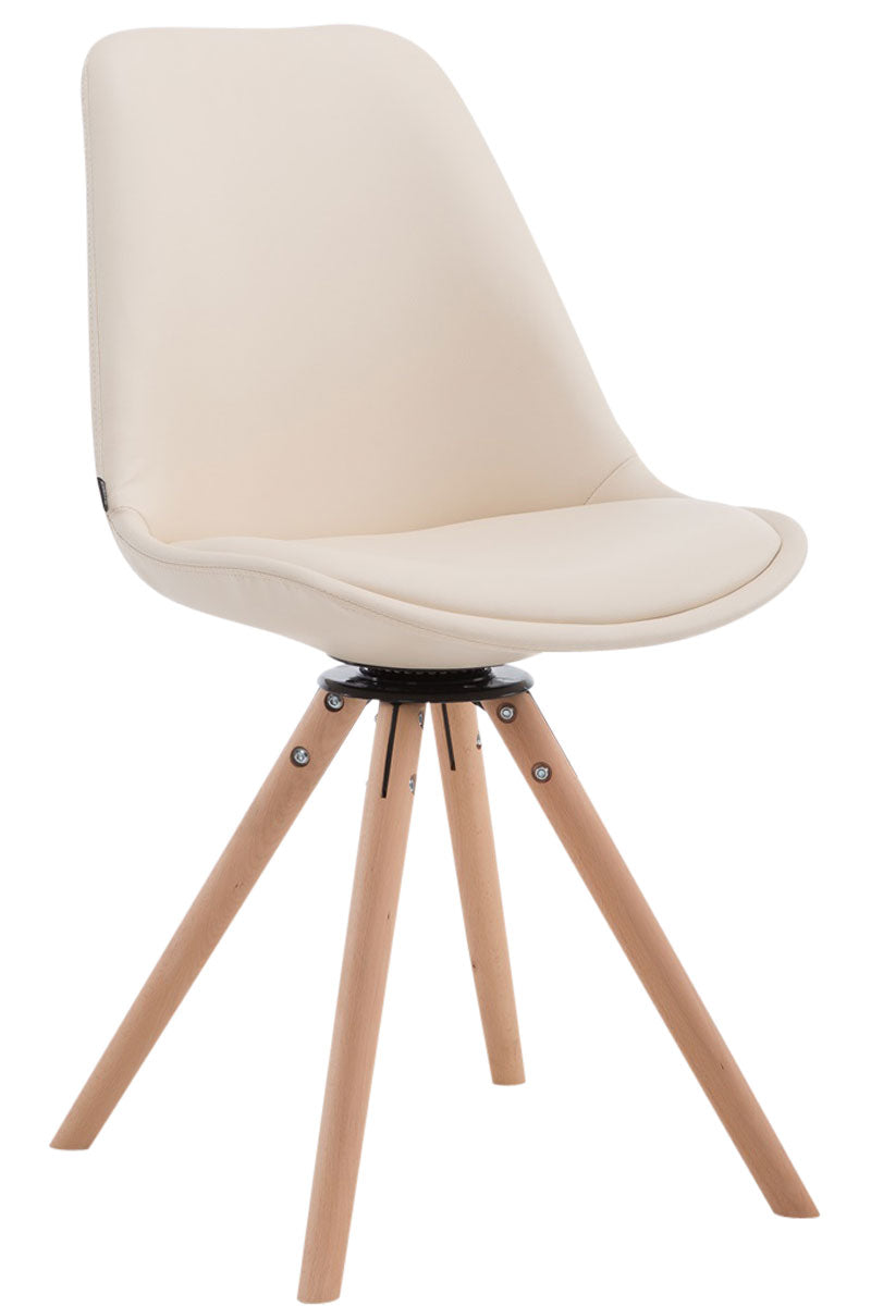Calais visitor chair - Lets every room shine in new splendor! This swivel chair gives any room an exclusive look. The comfortable upholstered chair not only impresses with its excellent seating properties, but also with the exciting material mix of artificial leather and wood. When it comes to the frame, you are spoiled for choice, the frame design is round or square (angular) and the frame color you can choose between natural, walnut or white. On the rotating 4-foot base, made of either beech or oak wood, this visitor chair looks good on any occasion.