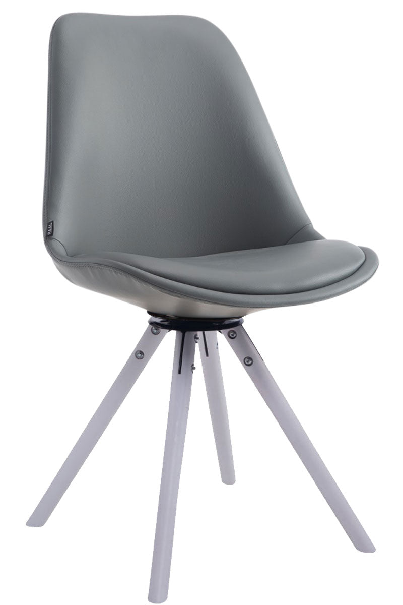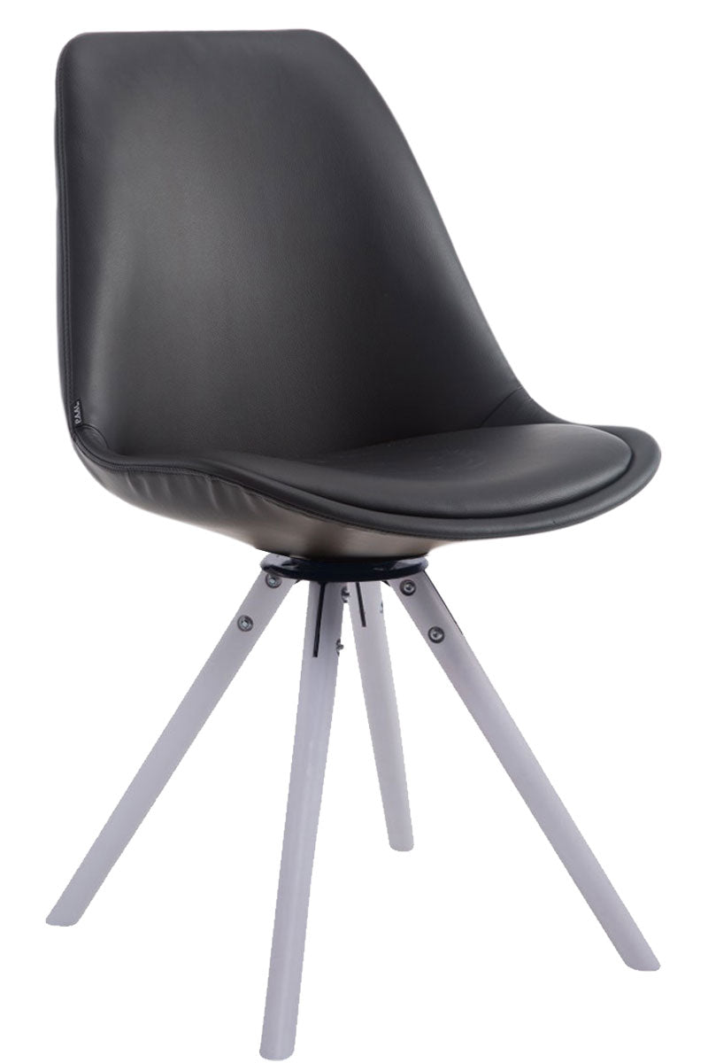 This swivel chair gives any room an exclusive look. The comfortable upholstered chair not only impresses with its excellent seating properties, but also with the exciting material mix of artificial leather and wood. When it comes to the frame, you are spoiled for choice, the frame design is round or square (angular) and the frame color you can choose between natural, walnut or white. On the rotating 4-foot base, made of either beech or oak wood, this visitor chair looks good on any occasion.