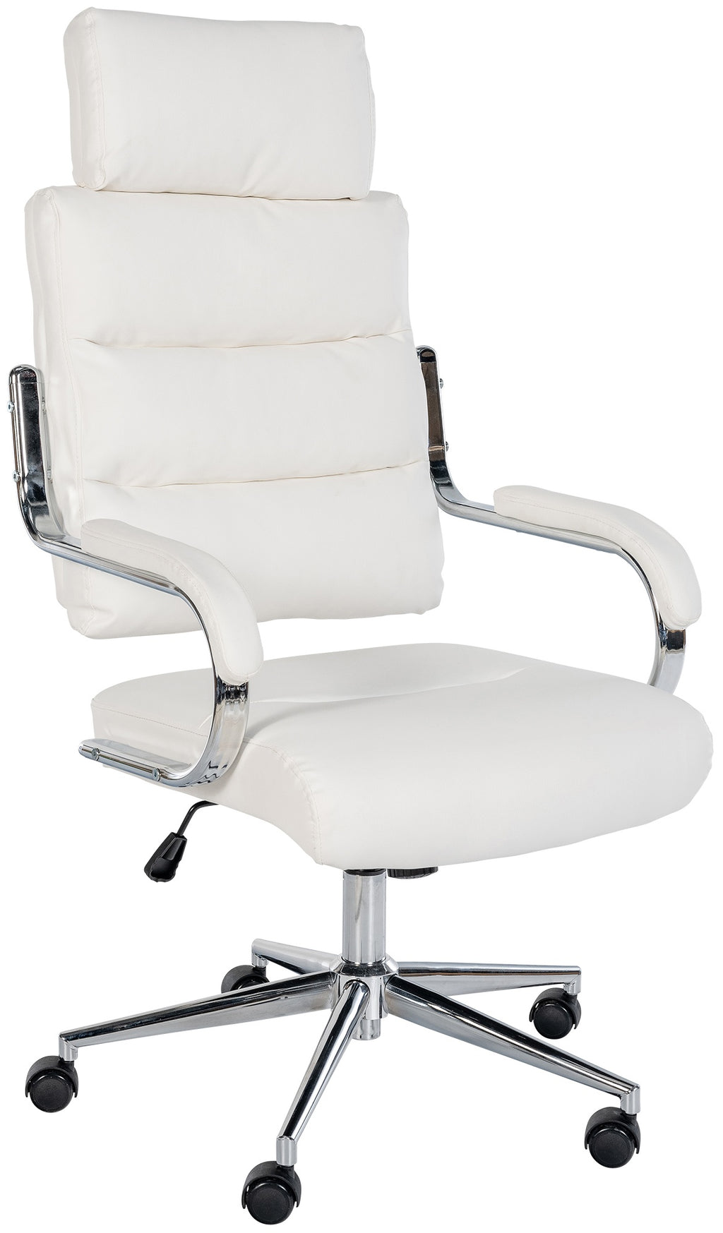 The swivel chair's height is infinitely adjustable via the high-quality gas lift. Finally, the five smooth-running casters provide freedom of movement.