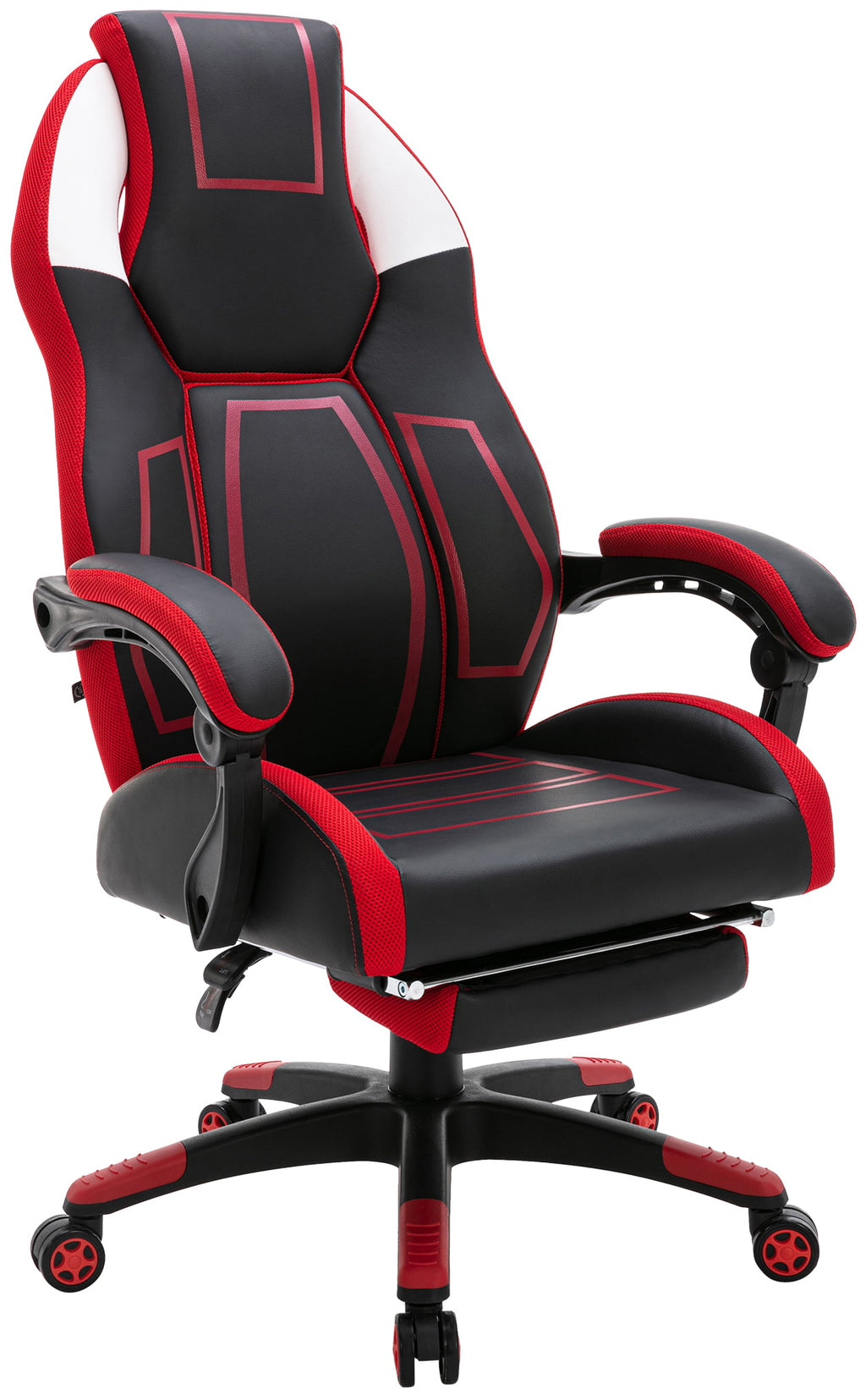 The Clovis office chair is the perfect companion for long days in the office or exciting gaming sessions. With its soft padding and comfortable arm and leg rests, you can sit back and relax. The artificial leather ensures an easy-care and durable surface.