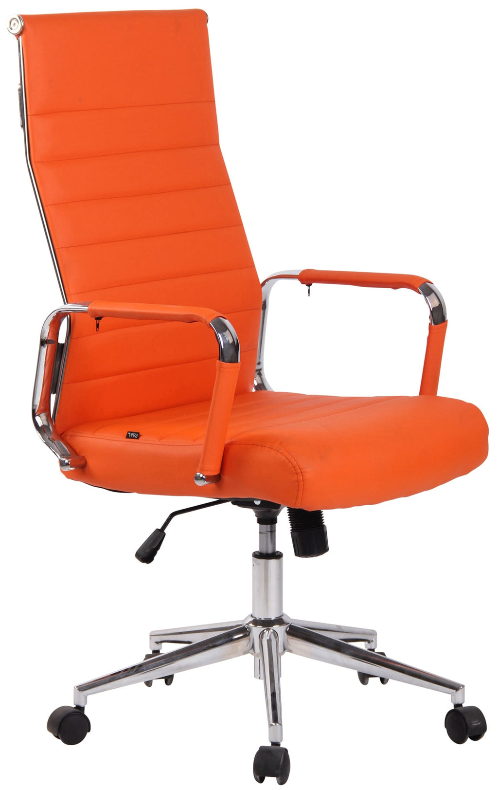 Columbus office chair The exclusive Columbus office chair not only impresses with its modern look, but no one can beat it when it comes to comfort. Its high-quality padding and the easy-care synthetic leather cover ensure a comfortable sitting experience even for several hours. In addition, the seat height is infinitely adjustable and guarantees ergonomic sitting. Furthermore, the desk chair is equipped with a rocker mechanism that ensures more freedom of movement. The elegant metal frame in a chrome look and the sturdy, curved armrests with imitation leather cover give the whole thing that certain extra something. Stability is ensured by the chrome-look metal frame, which is also available in black with the black cover. The five smooth-running castors mean you can roll easily and loosely across the floor - whether on hard or carpeted floors.