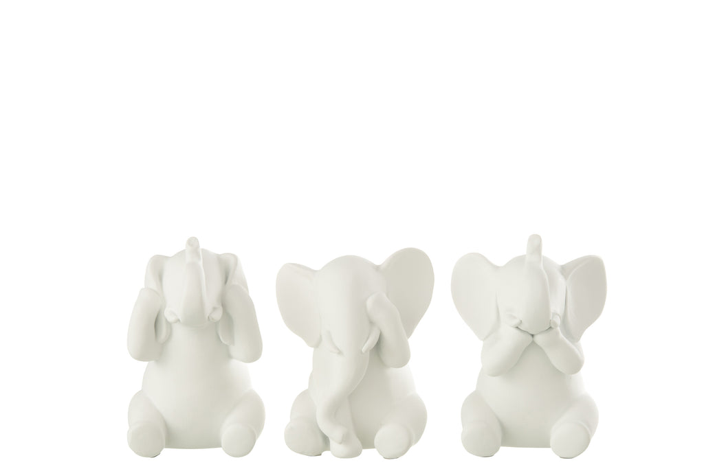 Deko Elefanten Sehen Hören Schweigen Polyresin Weiß