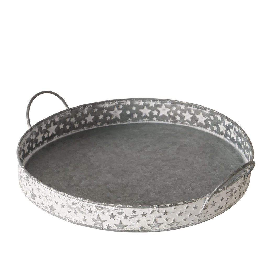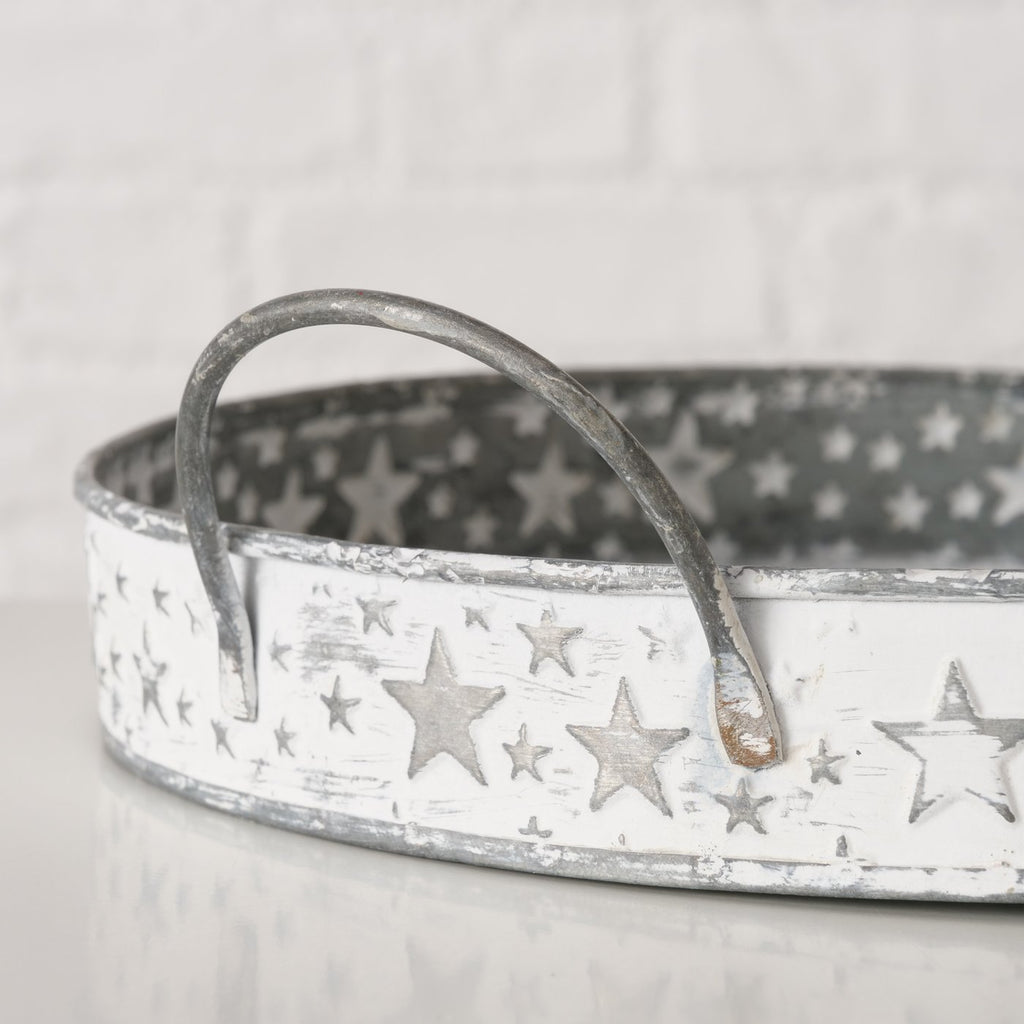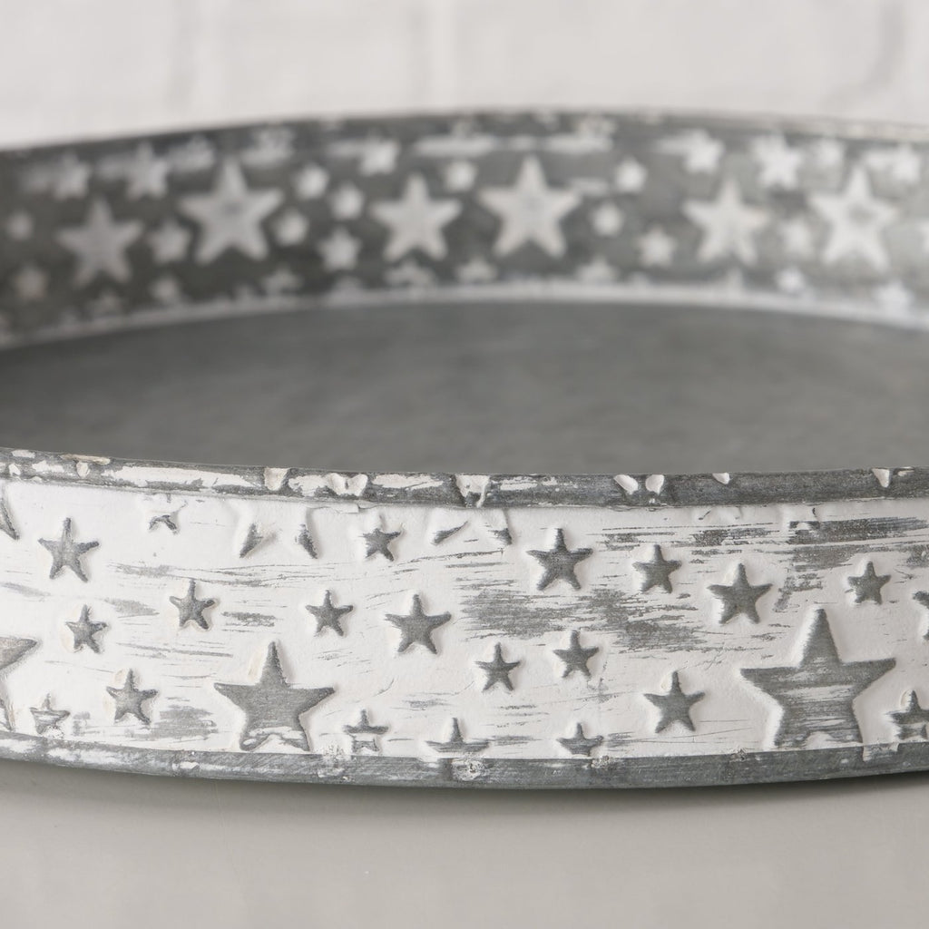 Deko Tablett Stephanus Metall Rund Grau Weiß mit Sternen Weihnachtsdekoration