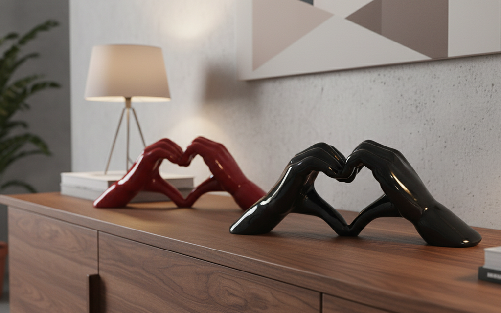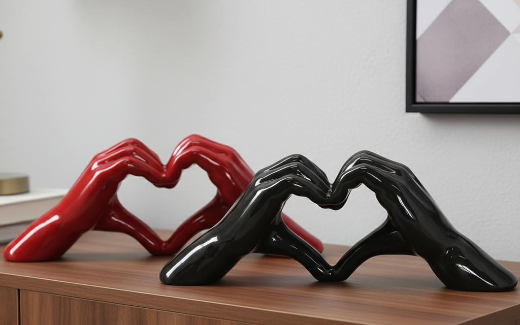 Dekofigur Amora Herzhand Keramik Schwarz oder Rot