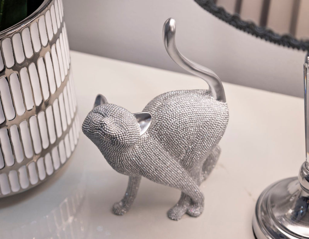 Gatto Sparky ist eine stilvolle Katzenfigur, die mit ihrem eleganten Auftreten und einem Hauch Glamour jedes Zuhause bereichert. Die detailreiche Gestaltung in Kombination mit einer glanzvollen Oberfläche macht sie zum perfekten Dekoobjekt für alle Katzenliebhaber und Freunde besonderer Wohnakzente. Aus hochwertigem Resin gefertigt, wirkt die Figur modern, charmant und hochwertig – ein echtes Highlight auf Kommode, Regal oder Beistelltisch.