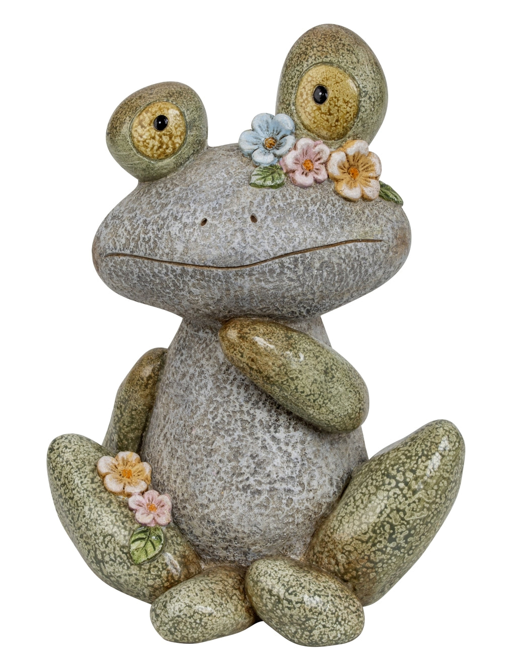 Dekofigur Steinfrosch Lotti mit Blumen aus Magnesia 33cm