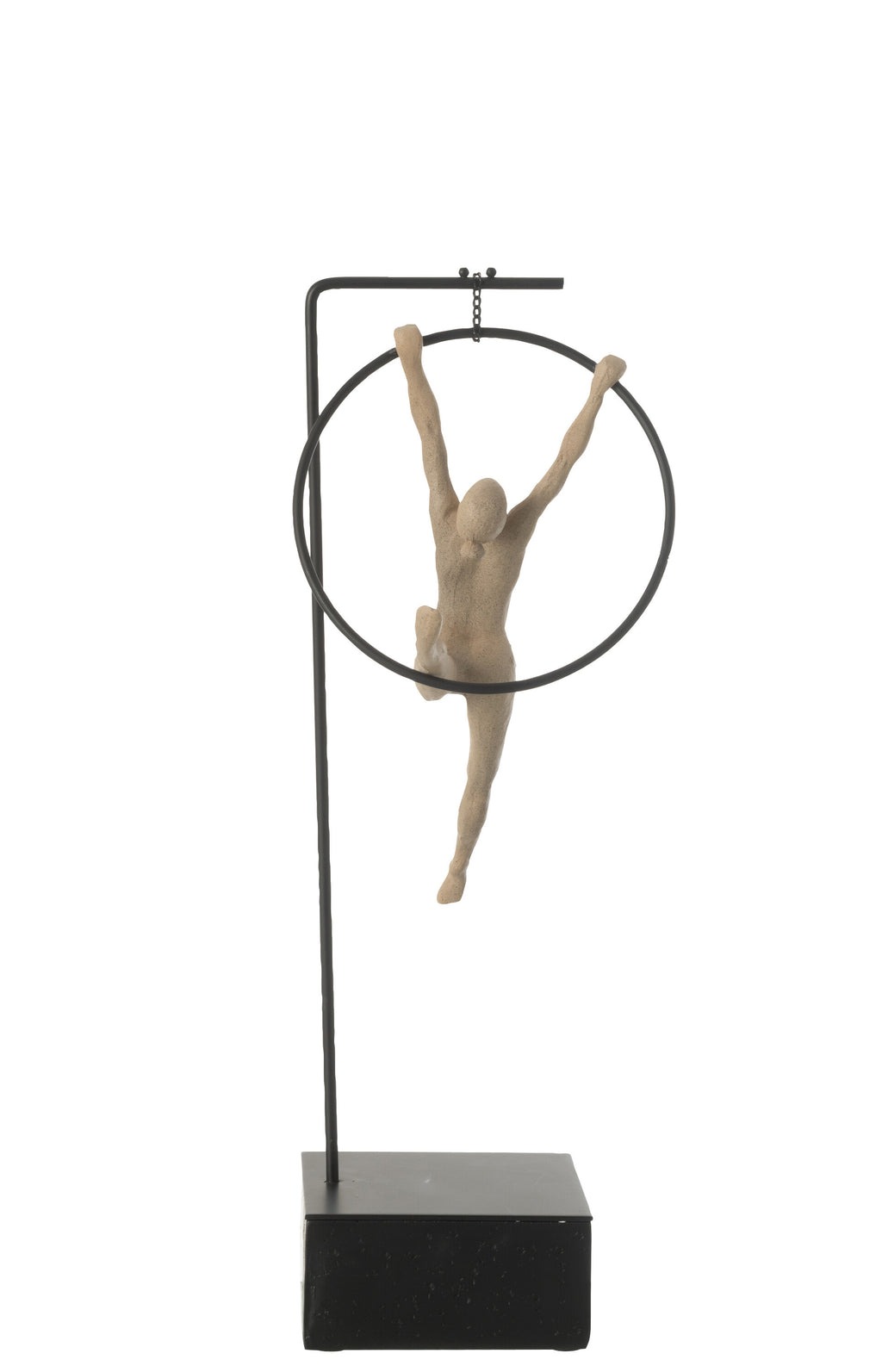Die Dekofigur Turnerina Reifen begeistert mit einer harmonischen Kombination aus Bewegung, Leichtigkeit und modernem Design. Die grazile Figur in Beige hält sich kunstvoll an einem schwarzen Reifen, wodurch eine dynamische, fast schwebende Wirkung entsteht. Gefertigt aus hochwertigem Resin und auf einem stabilen schwarzen Standfuß montiert, wird sie zum eleganten Blickfang auf Sideboards, Regalen oder Schreibtischen. Die moderne Formensprache macht diese Skulptur zu einem dekorativen Kunstobjekt, das sowohl im Wohnzimmer als auch im Büro oder Atelier für eine inspirierende Atmosphäre sorgt. Für alle, die künstlerische Eleganz schätzen, ist diese Figur ein besonderes Highlight.