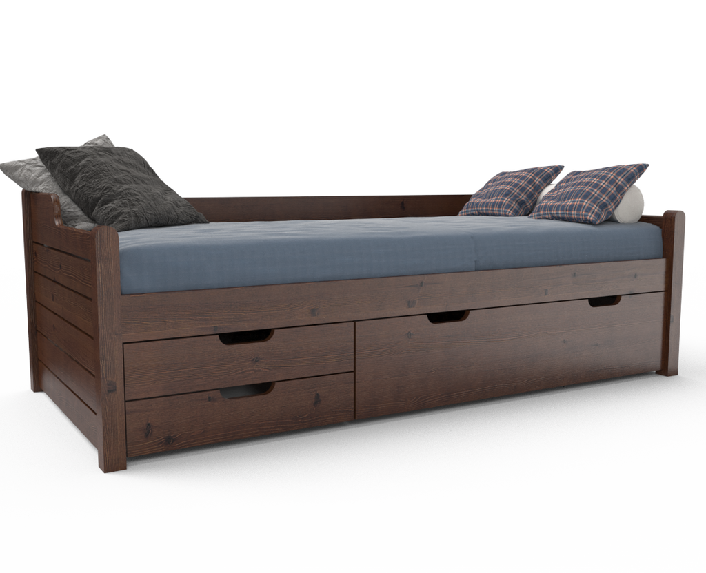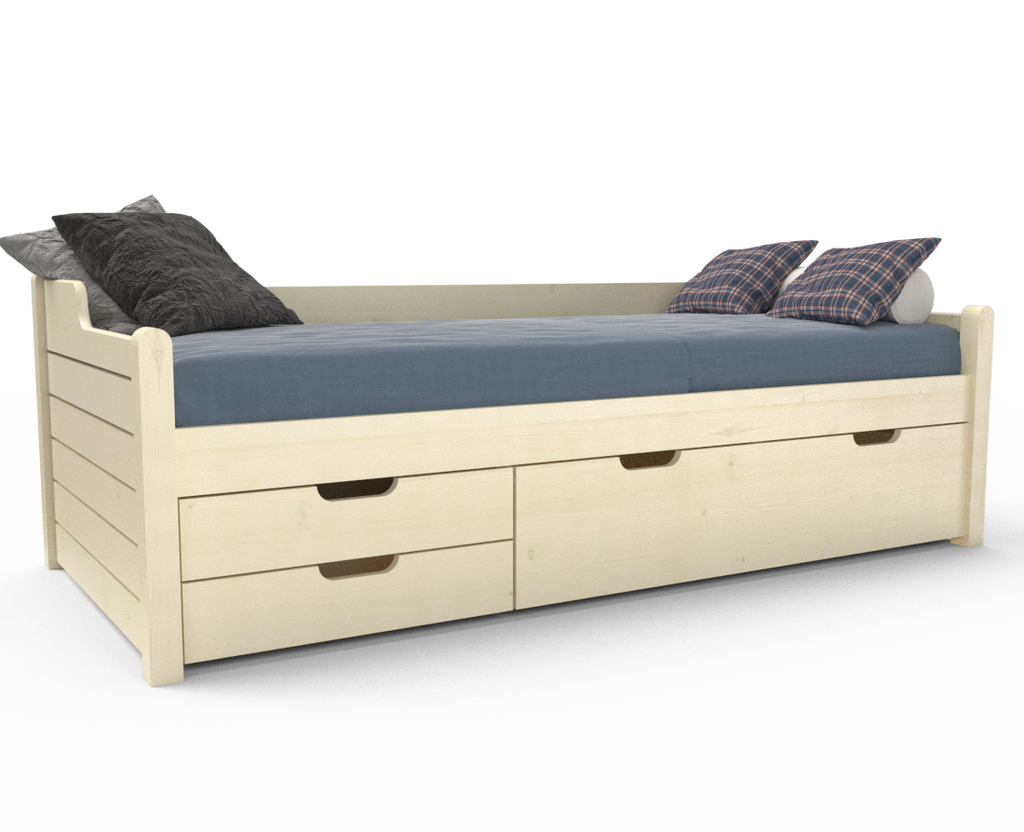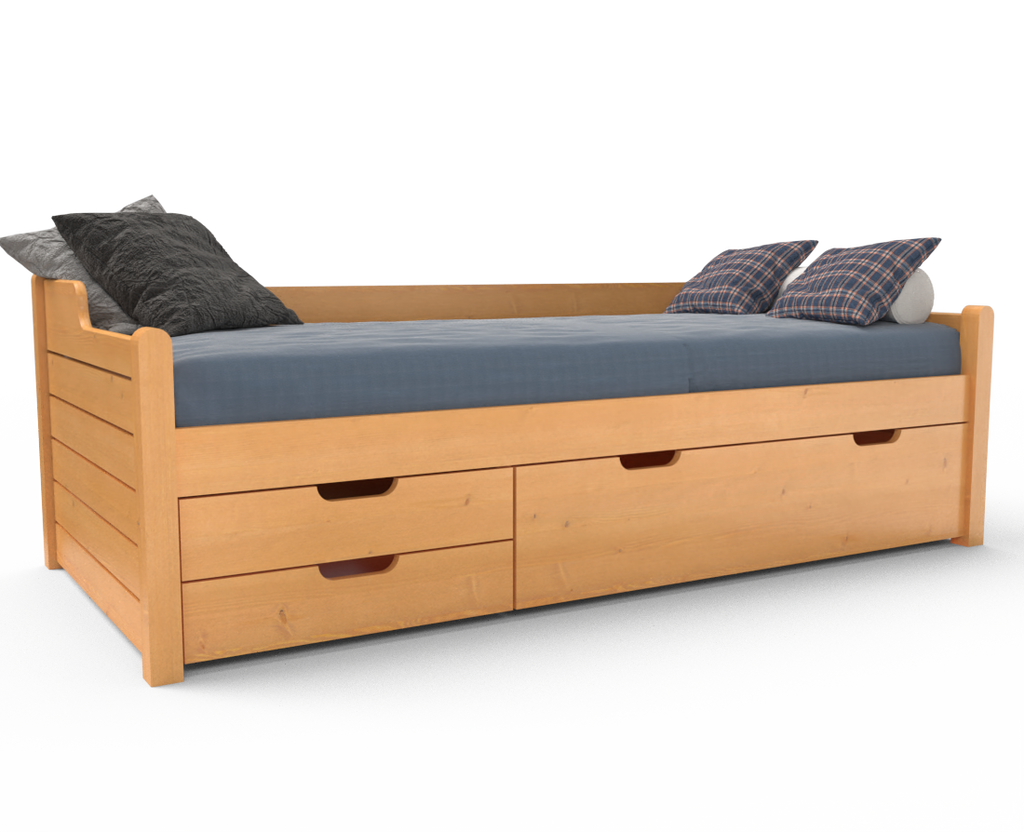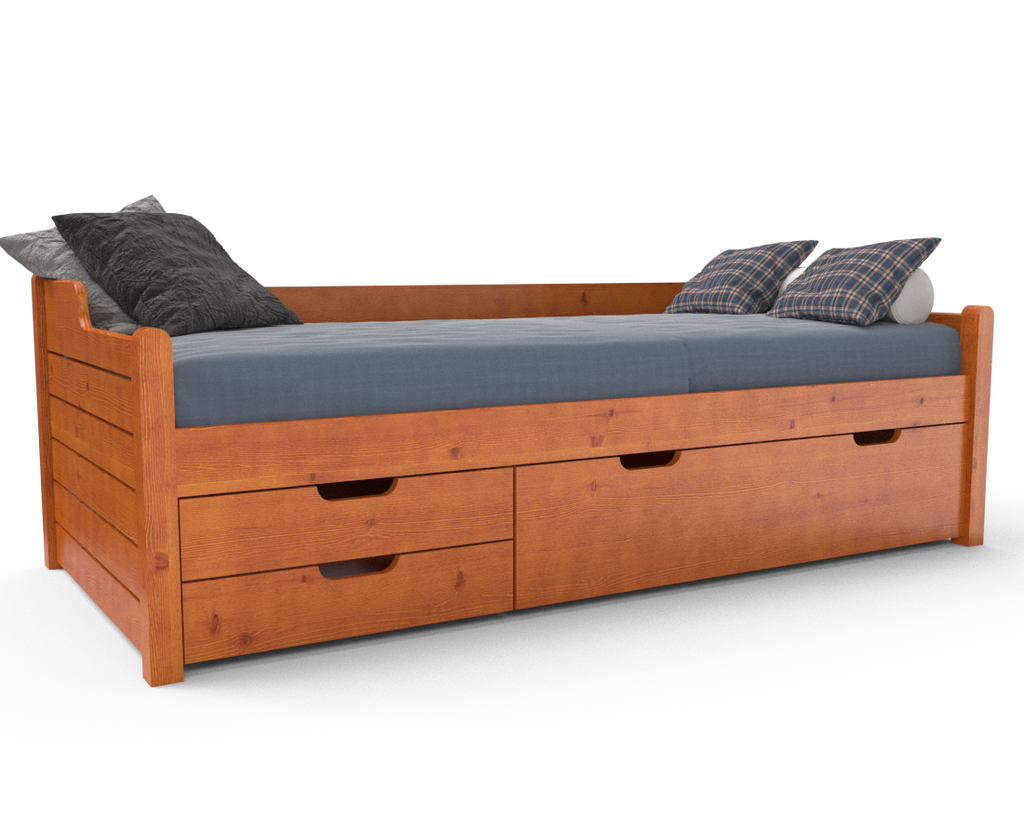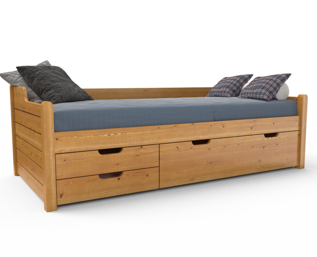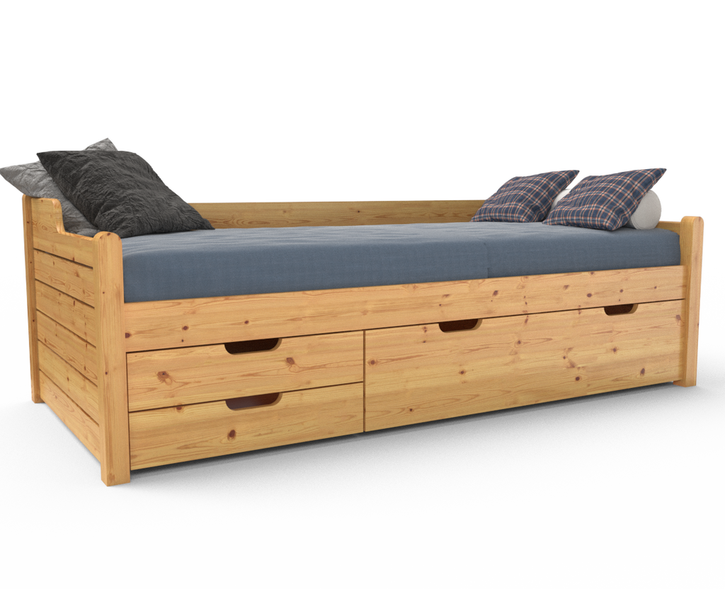 Einzelbett 90x200cm | 3-Schubladen | 100% Bio-Kiefer Massivholz Gästebett
