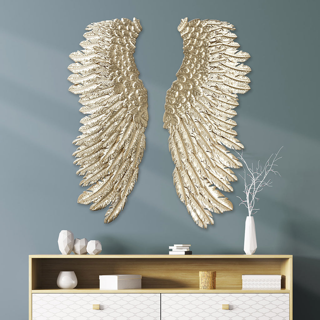 Engelsfluegel Wanddekoration Gold Metall 115cm