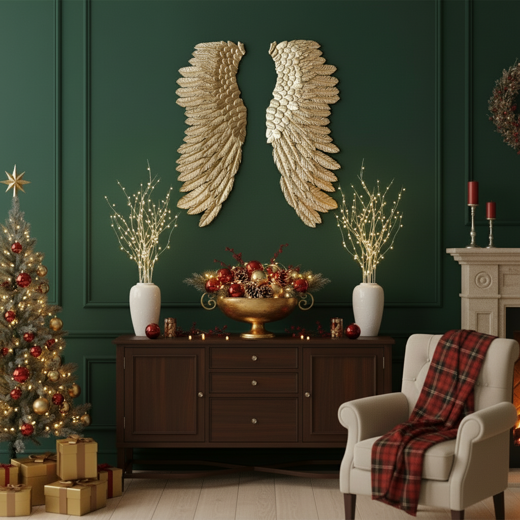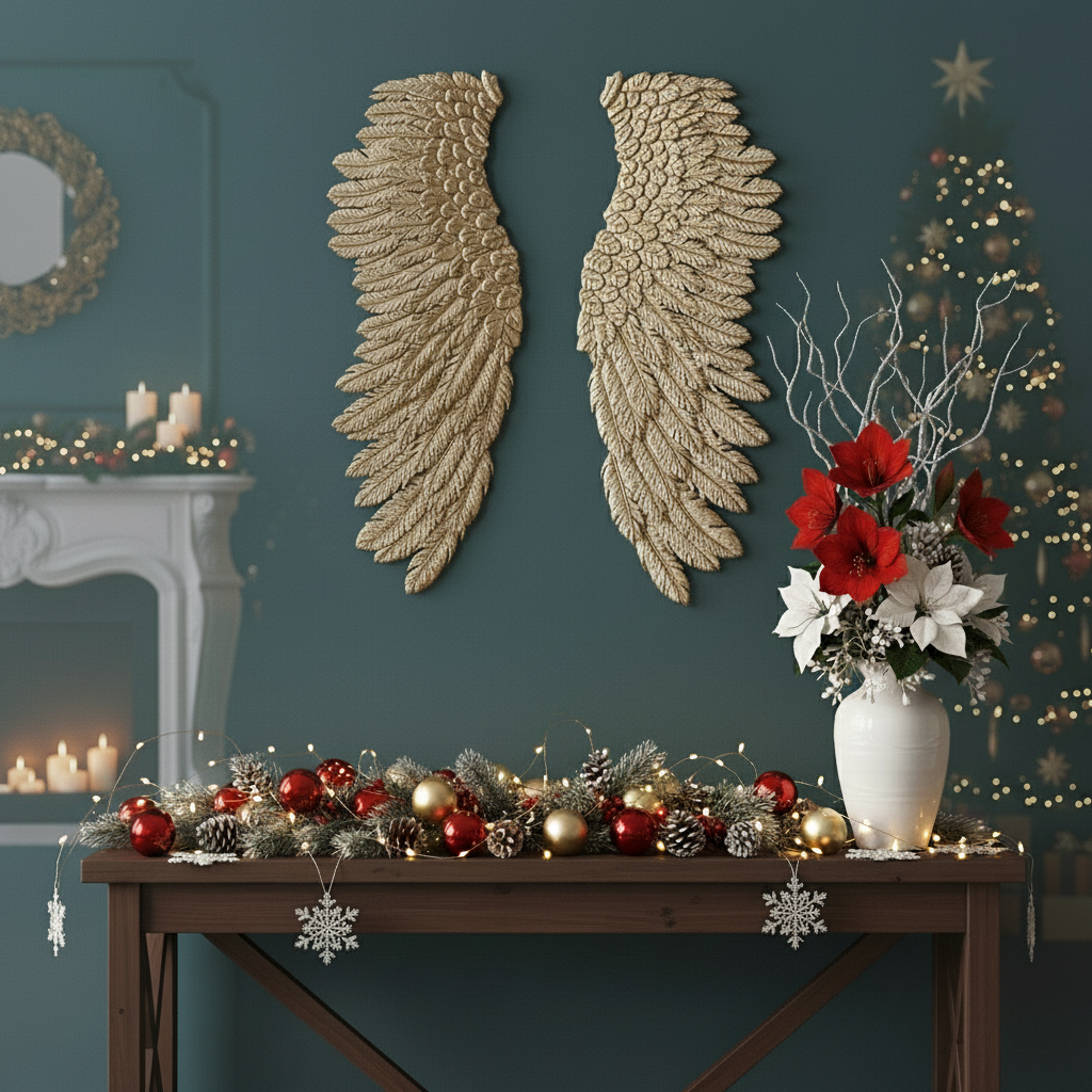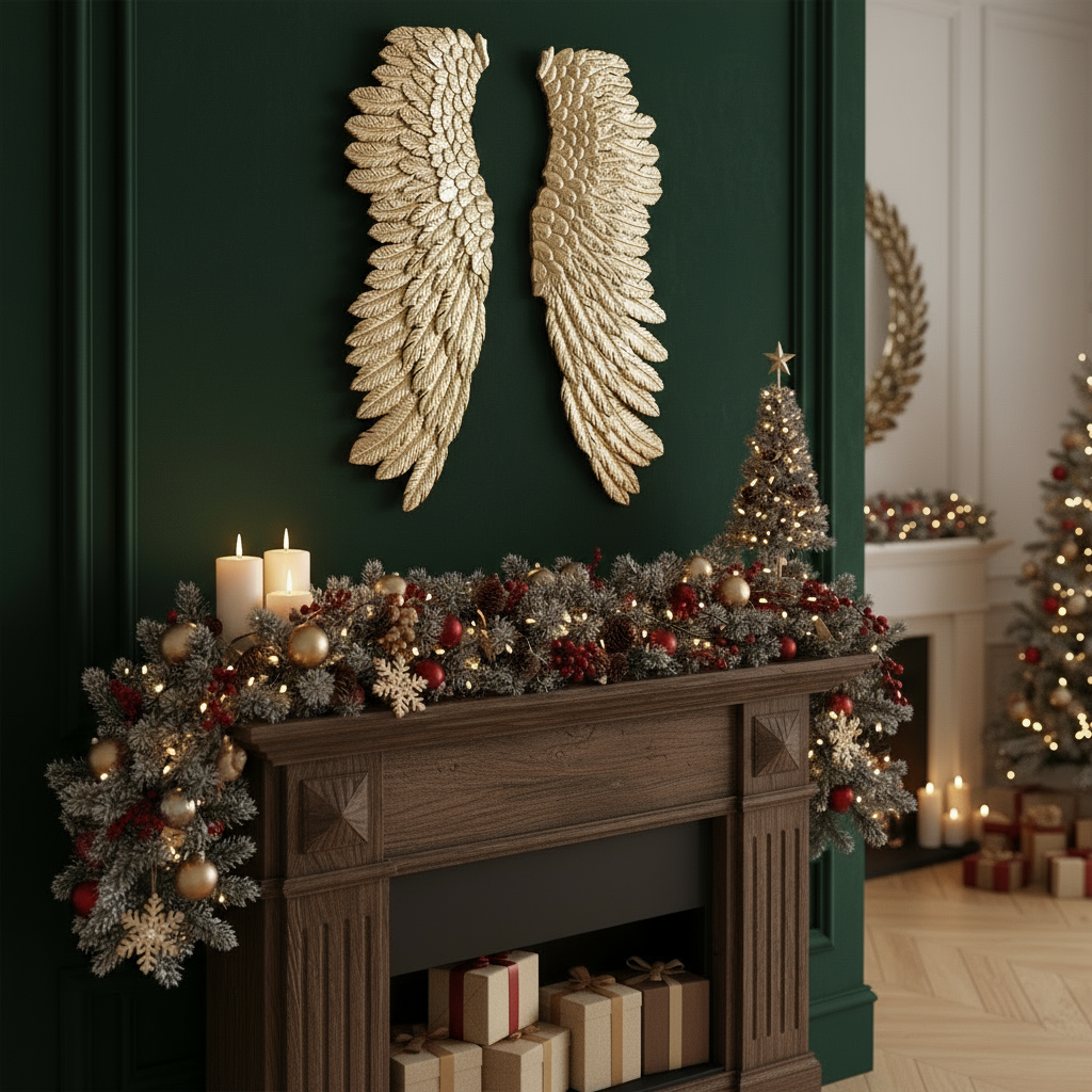 Das Wandrelief Golden Wings 2er Set verleiht jedem Raum eine beeindruckende und zugleich elegante Ausstrahlung. Die beiden detailreich gestalteten Flügel bestehen aus hochwertigem Metall und sind in einer glänzenden goldfarbenen Optik gehalten, die das Licht wunderschön reflektiert. Die strukturierte Oberfläche sorgt für eine effektvolle Tiefe und unterstreicht die filigrane Federdarstellung. Ob im Wohnzimmer, im Eingangsbereich oder im Schlafzimmer – dieses dekorative Flügelduo setzt einen stilvollen Akzent und schafft eine harmonische, moderne Wandgestaltung. Dank integrierter Aufhängungen lassen sich die Flügel einfach montieren und flexibel an der Wand arrangieren.