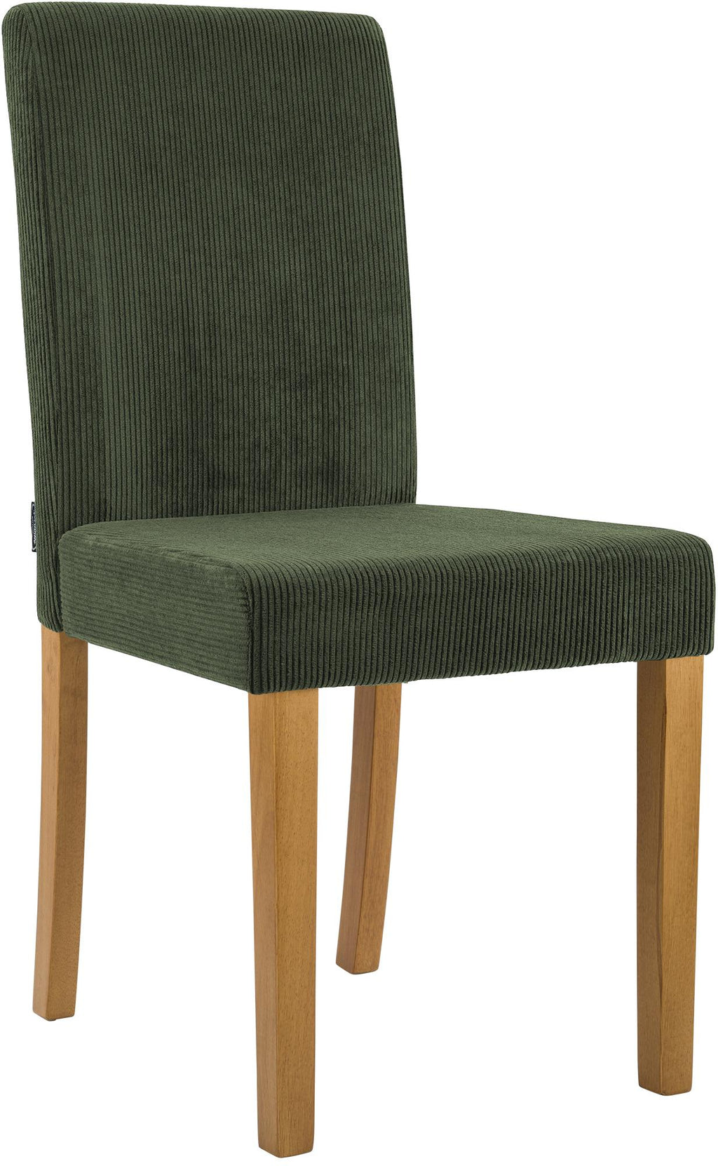 The foundation of this dining chair is a sturdy four-legged frame made of rubberwood. Floor protectors prevent damage to delicate floors. Details: Total width: 41 cm Total height: 91 cm Total depth: 47 cm Seat height: 47 cm Seat surface (W x D): 41 x 42 cm Backrest height: 44 cm Maximum load capacity: 115 kg Weight: 6 kg Material composition: 75% cotton / 25% polyester