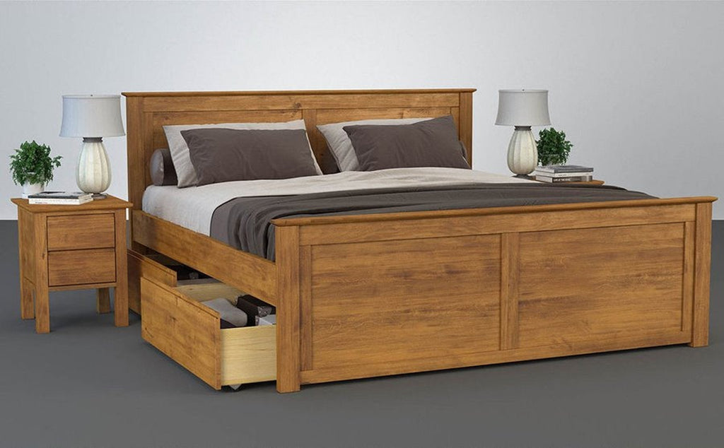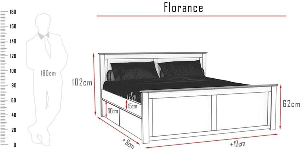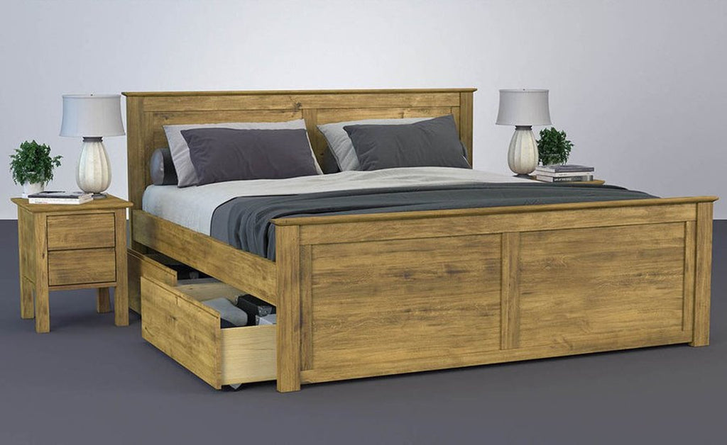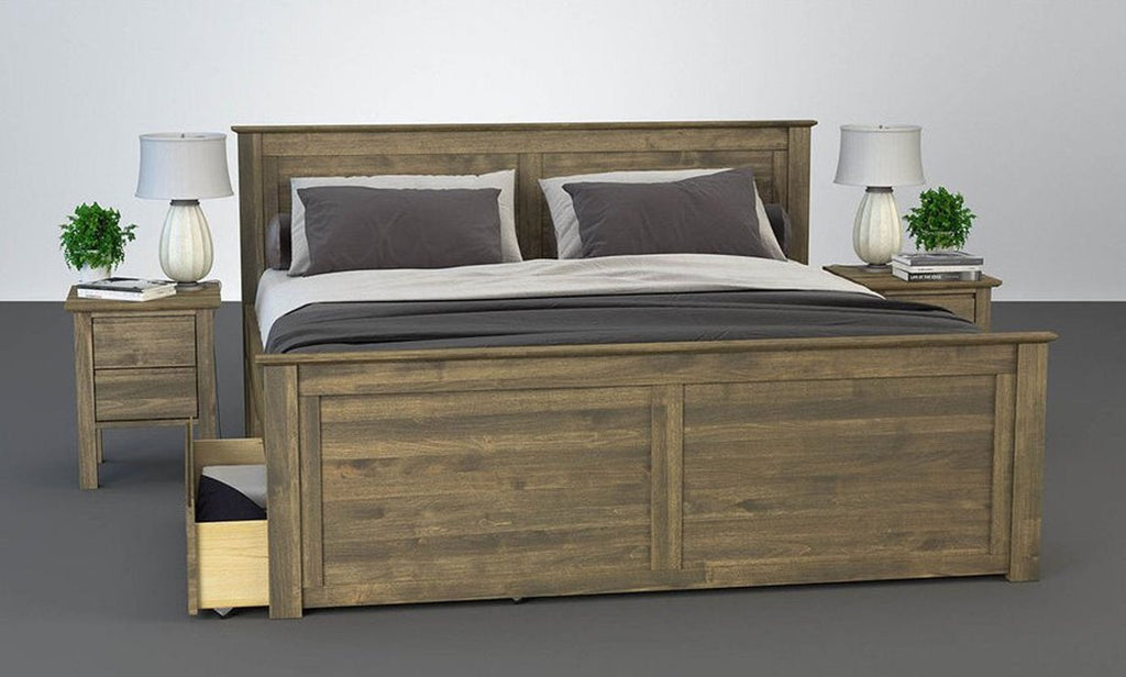1 x Bettrahmen mit Kopf und Fußteil, 1 x Mittelplanke (ab einer Matratzenbreite von 120cm) inkl. Schubladen.