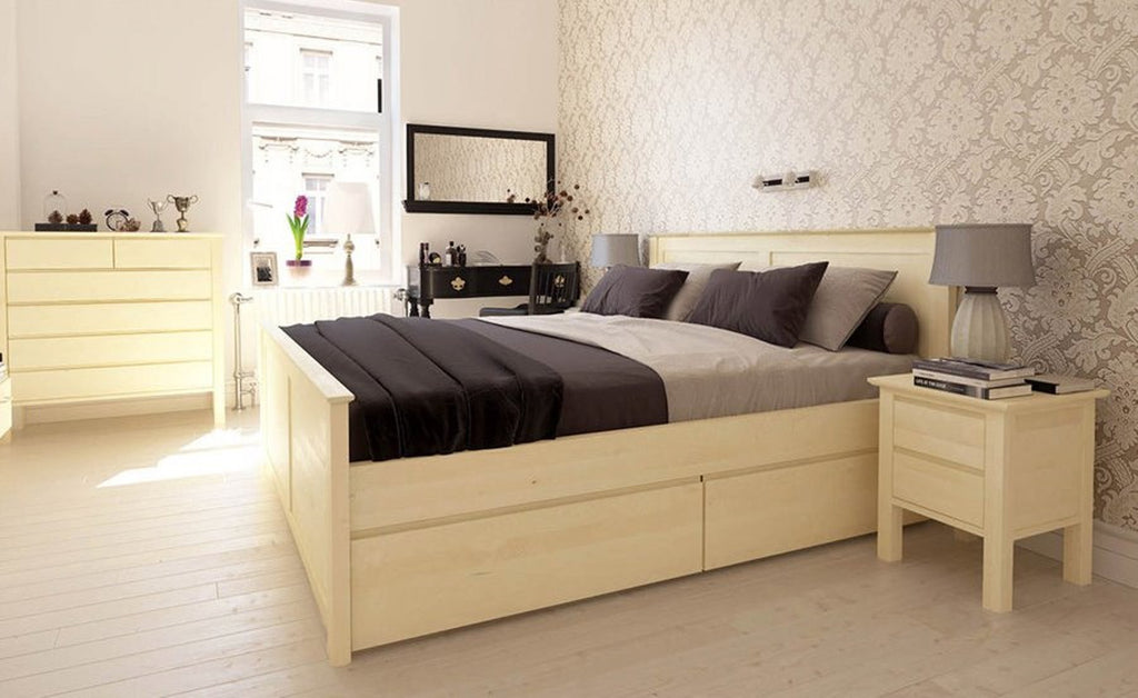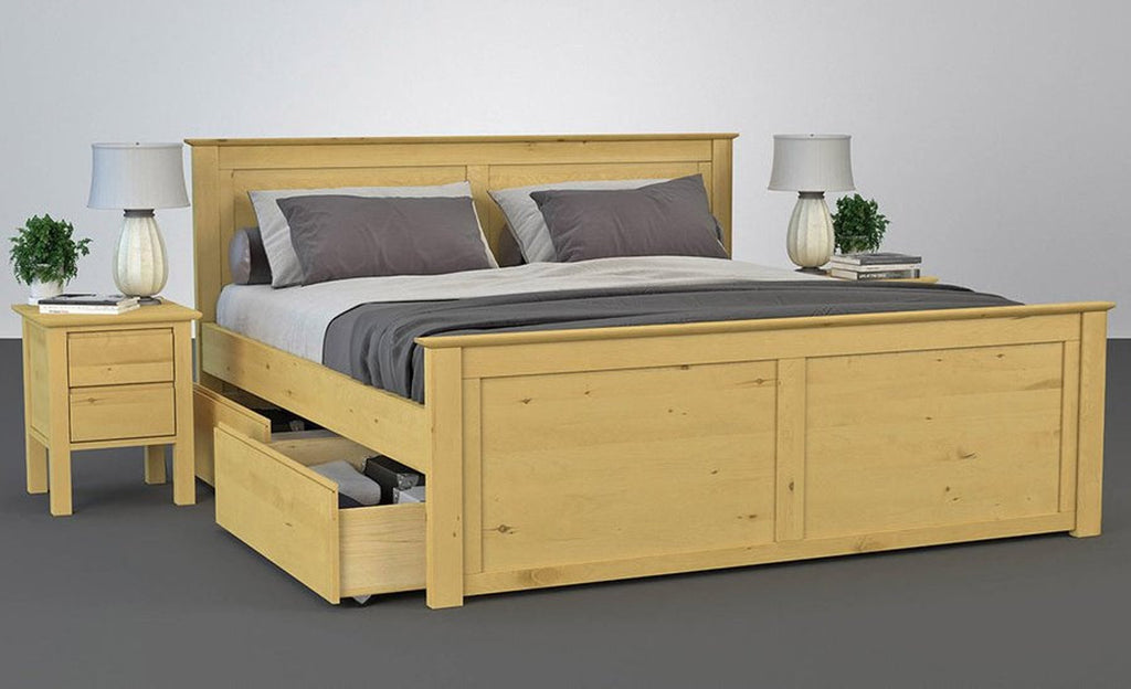 Ab einer Breite sind von 120cm beinhaltet das Bett 4 Schubladen.