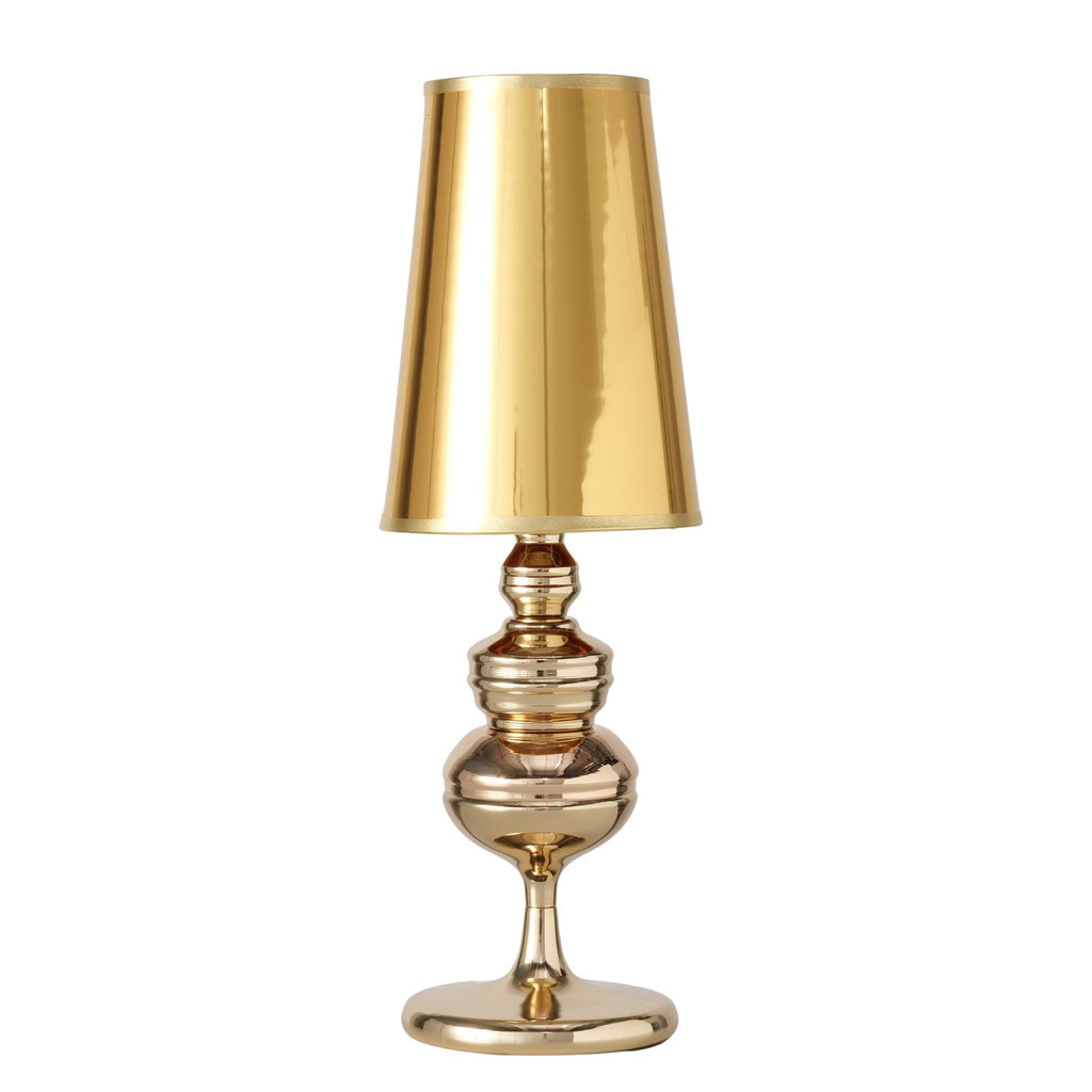 Die Tischleuchte Georgia überzeugt mit ihrer eleganten, klassischen Form und einer edlen goldfarbenen Oberfläche. Ihr harmonisch gestalteter Fuß und der schlanke, leicht konische Lampenschirm verleihen ihr eine stilvolle Präsenz, die sowohl moderne als auch klassische Einrichtungsstile ergänzt. Das warme Licht sorgt für eine angenehme Atmosphäre und macht die Leuchte zu einer idealen Ergänzung für Wohn- und Schlafräume. Durch ihr zeitloses Design setzt sie dezente, zugleich wirkungsvolle Akzente auf Sideboards, Nachttischen oder Konsolen.
