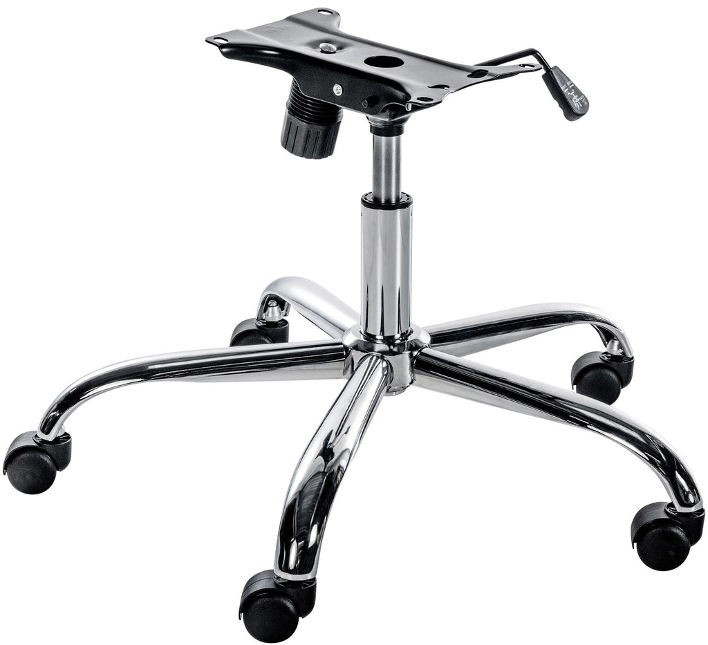 With this frame we enable you to repair your office chair or give it a new shine. If your office chair frame is defective or scratched and you are therefore no longer satisfied with the function and appearance of your swivel chair, your office chair does not have to be replaced with a new one immediately, because this frame can be universally installed and used for seats with the appropriate dimensions. The frame has 5 smooth-running castors, is adjustable in height and is equipped with a rocker function.