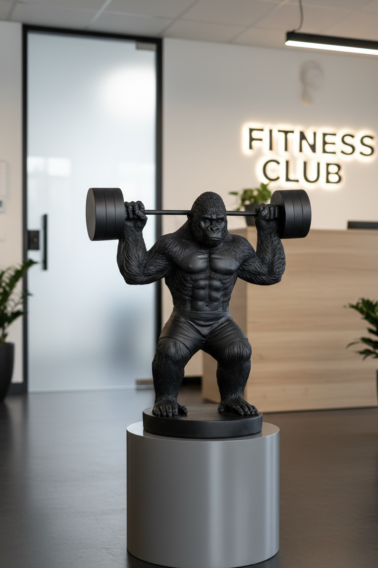 Die matte schwarze Oberfläche verleiht der Figur eine moderne, fast industrielle Eleganz, während die realistische Struktur für Tiefe und Ausdruck sorgt. Ob im Wohnzimmer, Büro oder als Statement-Piece in Fitnessräumen – Iron Kongsetzt kraftvolle Akzente und strahlt Stärke aus.