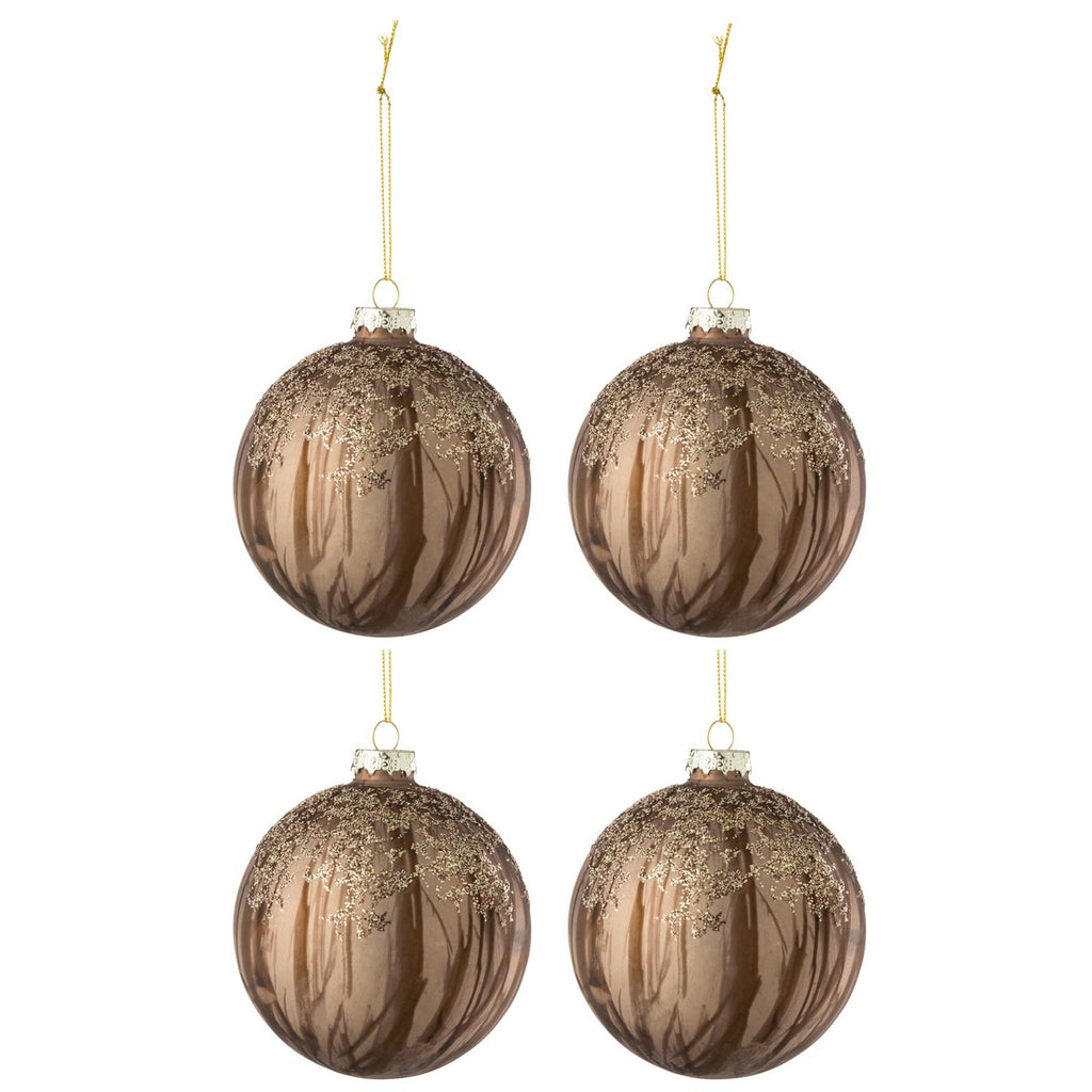 J-Line Box with 4 Christmas Baubles, Lines + Sequins, Glass, Brown, Light/Dark