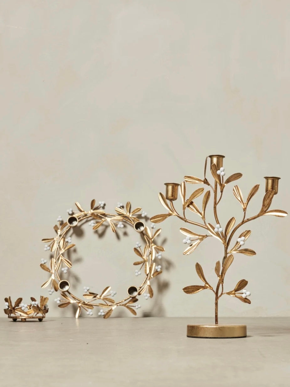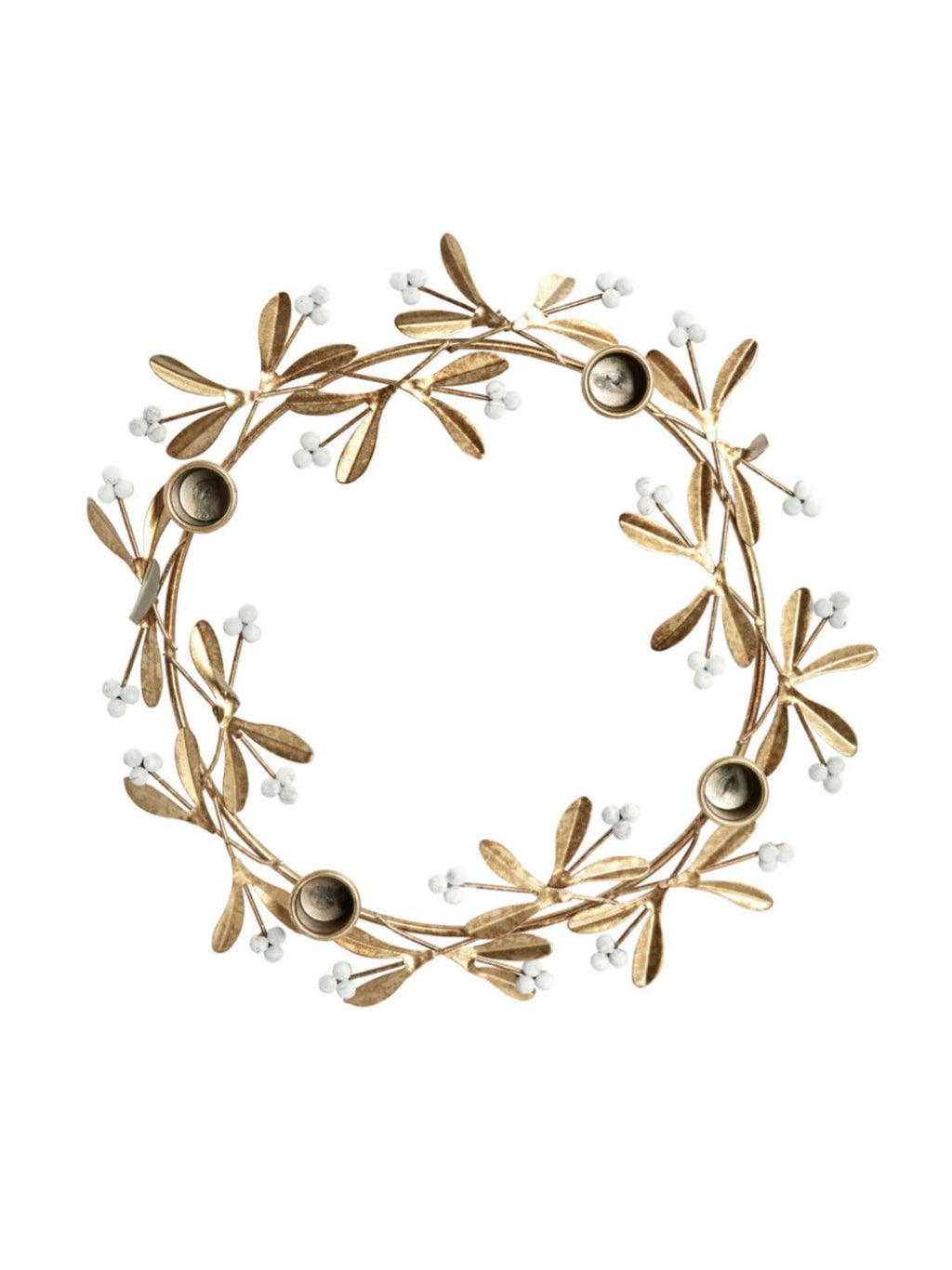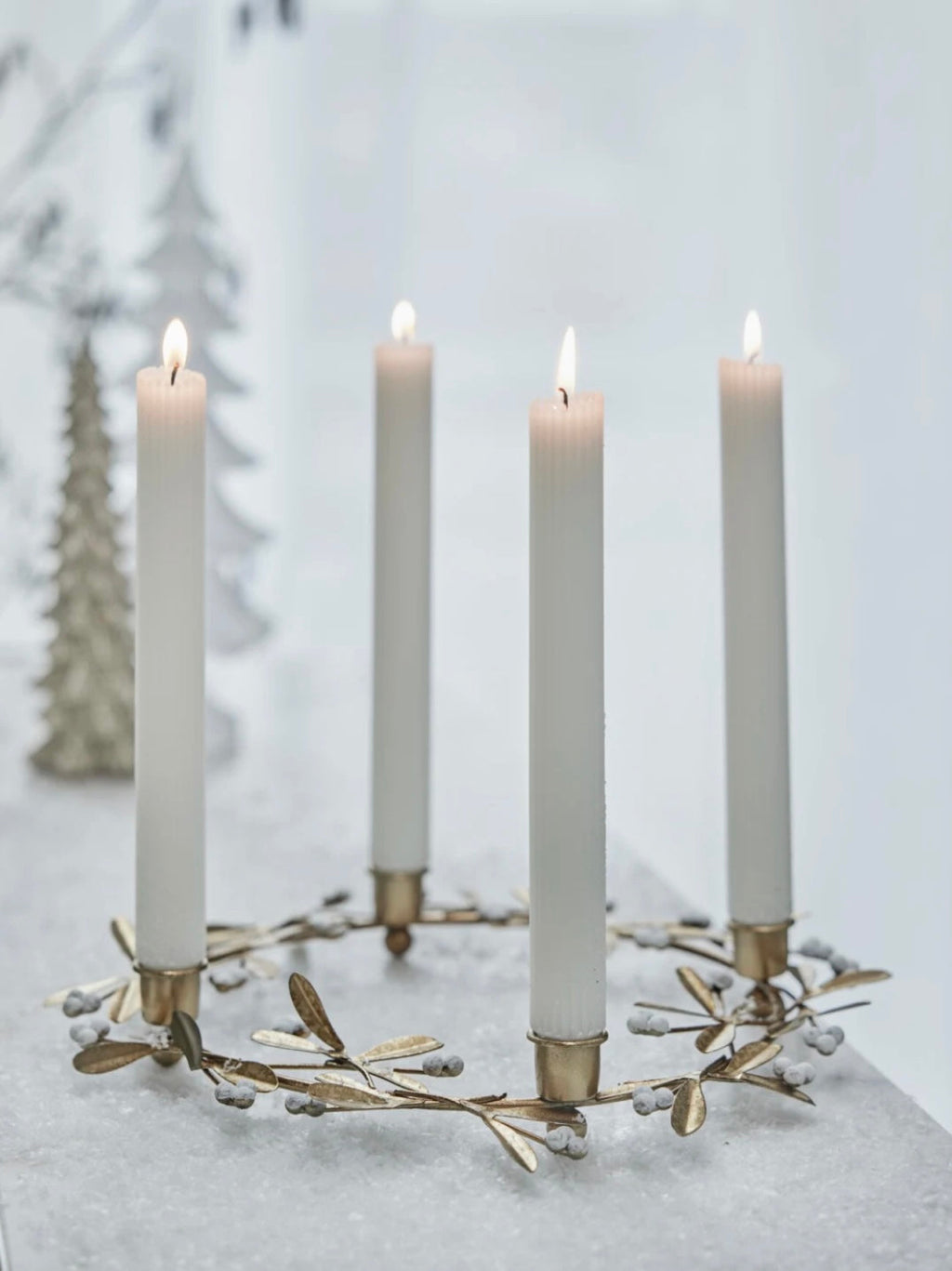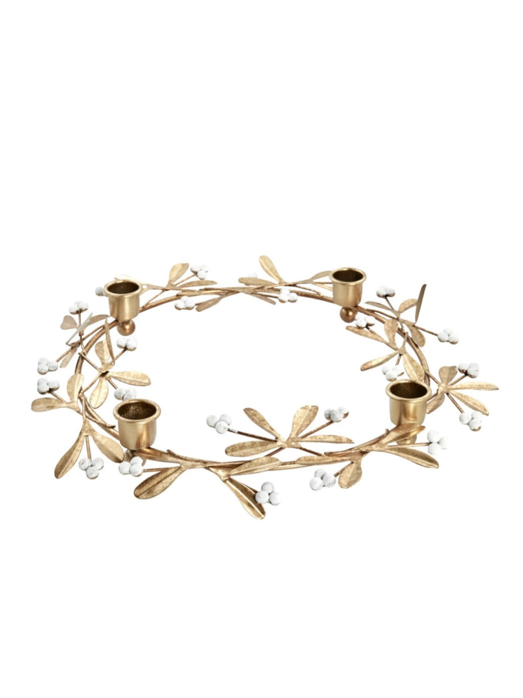 Mit Platz für vier Kerzen eignet sich dieser Kerzenständer perfekt als dekorativer Adventskranz für den letzten Monat des Jahres. Die weihnachtlichen Misteln verleihen dem Kerzenhalter den festlichen Touch.