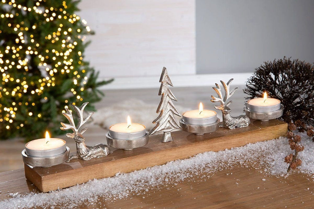 Kerzenleuchter Natale Mangoholz Silber Akzente 4er Teelichthalter Gilde