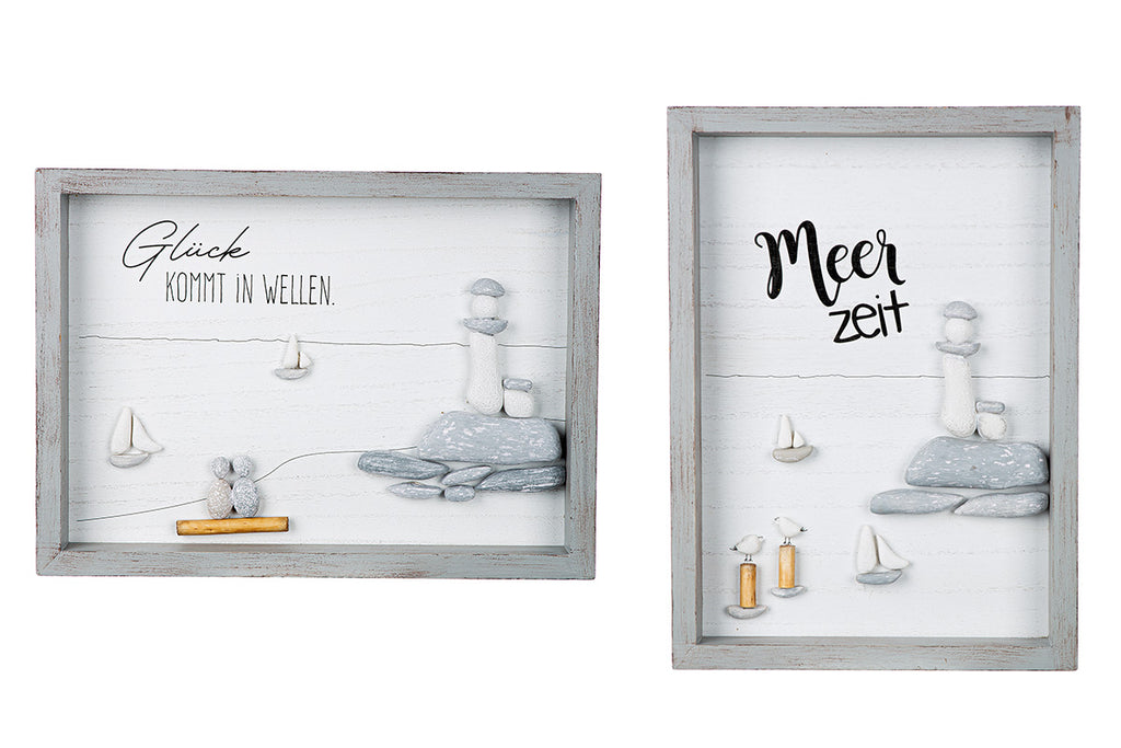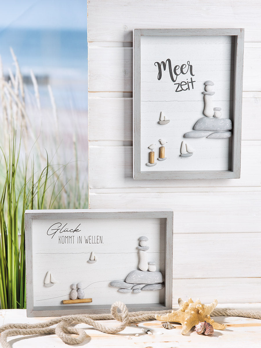 Meerzeit Wandbild 2er Set maritim Spruch grau 33x24 cm