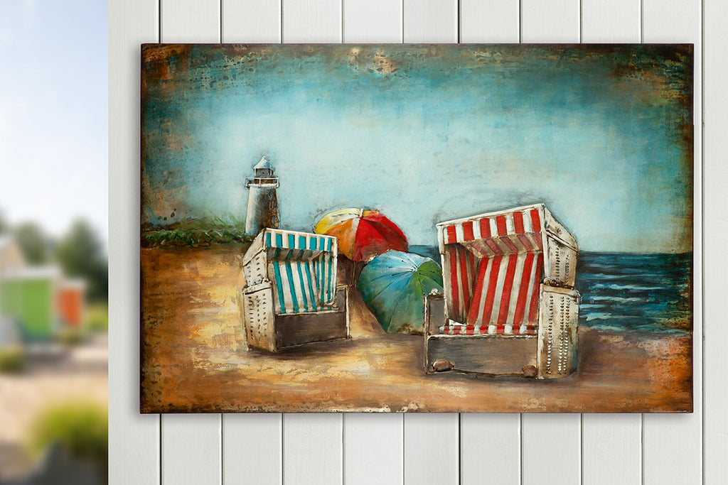 Metall Wandbild Strandkorb maritim 3D Optik 120x80cm