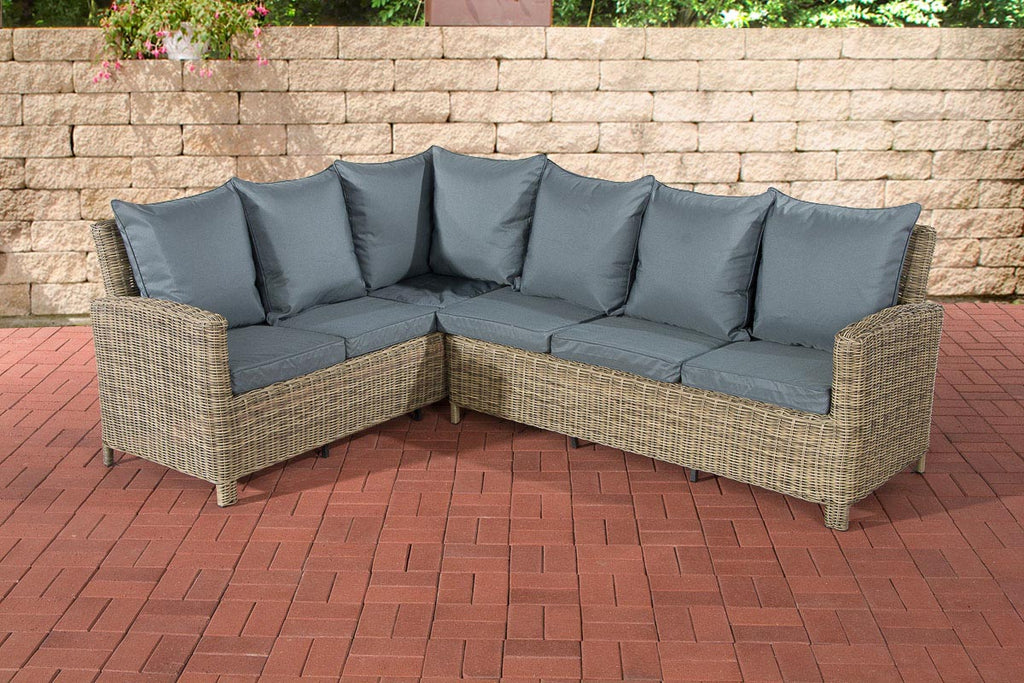 The UV-resistant material polyrattan, which is particularly suitable for outdoor use, looks like conventional rattan wicker, but is much more robust. The high-quality, 5 mm thick, round polyrattan fibers are waterproof, easy to care for and UV-resistant, so that they retain their color depth even after frequent and long-term use. This elegant color, in combination with a light structure, ensures the absolutely natural appearance of this furniture set.