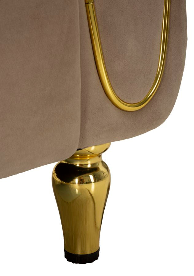 Alma Grigio überzeugt mit zeitloser Eleganz und einem Hauch Luxus. Der edle Samtbezug in warmem Steingrau verleiht diesem Sofa eine ruhige, stilvolle Ausstrahlung, während goldfarbene Akzente an Beinen und Armlehnen für den typischen Glamour-Effekt sorgen. Die weich gepolsterte Sitzfläche mit feiner Steppung und zwei dazu passende Kissen sorgen für optimalen Komfort. Ideal für moderne Wohnräume mit hochwertigem Interieur.