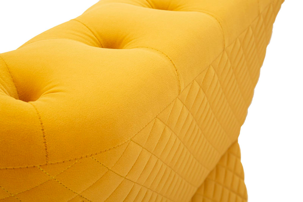 Der Sessel Emy Senape ist ein stilvoller Eyecatcher mit Glamour-Faktor. Der intensive Senfton des weichen Samtbezugs bringt Wärme und Lebendigkeit in moderne Wohnkonzepte. Kombiniert mit goldfarbenen Metallakzenten an Beinen und Armlehnen sowie einer eleganten Rautensteppung außen entsteht ein luxuriöser Gesamteindruck. Die Chesterfield-gepolsterte Rückenlehne und das inkludierte Kissen sorgen für optimalen Sitzkomfort – ideal für Wohnzimmer, Lounge oder stilvolle Wartebereiche.
