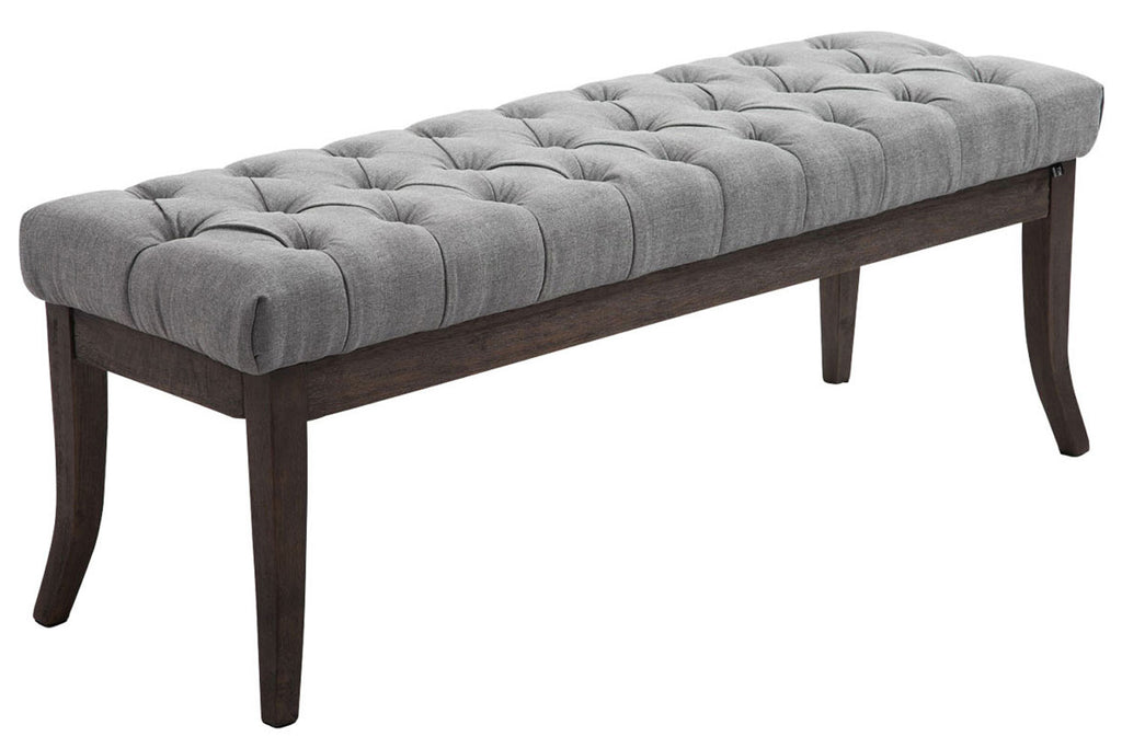 Our Ramses fabric design bench impresses as a comfortable upholstered seat in an elegant Chesterfield design! The elaborately quilted fabric cover made of 100% polyester gives this bench an exclusive look. The decorative piece of furniture integrates flexibly and beautifully into any room. Whether in the living room, in the hallway or in the dining room - there are no limits to individual design! The finely curved wooden legs underline the elegant look and provide the necessary stability. Creativity is also required for the color combination: choose the right one from the colors we offer. The sizes offered offer beautiful and easy combinability, as the Ramses bench is available in three different widths.