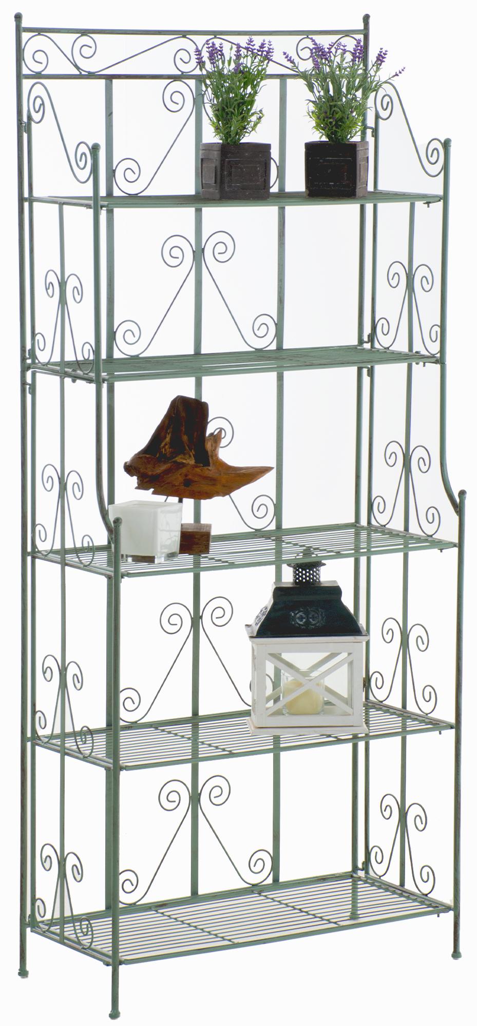 The Ciara freestanding shelf is a versatile and decorative piece in a country style, suitable for both indoor and outdoor use. With its five fold-down shelves, it offers ample space for plants, books, and other decorative items. The powder-coated metal construction ensures robustness and stability, making it ideal for use on balconies, in gardens, on patios, as well as in living rooms and other living spaces. The space-saving design allows for compact storage when the shelf is not in use. The delicate embellishments give the shelf an attractive look that blends harmoniously with any interior style. The Ciara freestanding shelf is quick and easy to assemble and offers added flexibility thanks to the fold-down shelves.