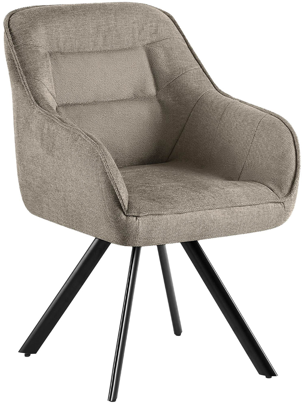 Entscheidend für einen bequemen Sitz ist das angenehme Polster über Sitz, Rückenlehne und Armlehnen. Dabei sind sowohl Sitzschale als auch Rückenlehne durchgängig wahlweise mit strapazierfähigem Stoffbezug oder Bezug in Kunstlederoptik versehen. Die sogenannte Swivel-Funktion sorgt dafür, dass der Sitz in einer Spanne von 180 Grad schwenkbar ist, was zusätzliche Bewegungsfreiheit bringt.