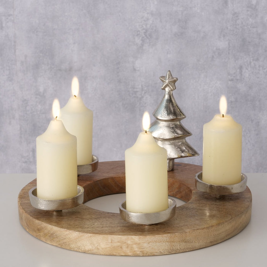 Teelichthalter Sorrest Holz Metall Adventskranz Rund Silber Natur