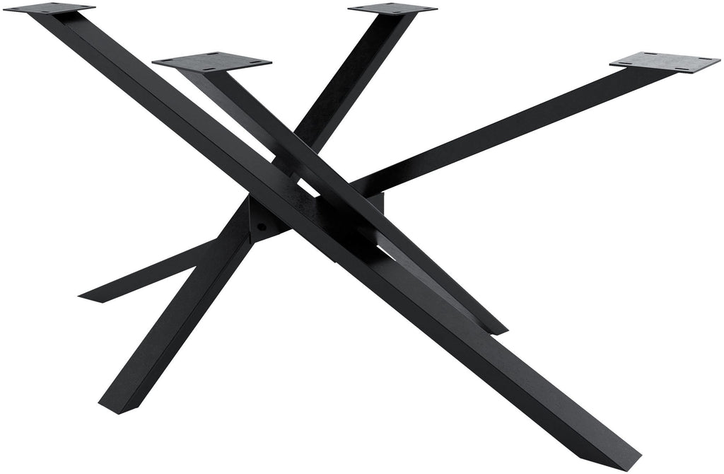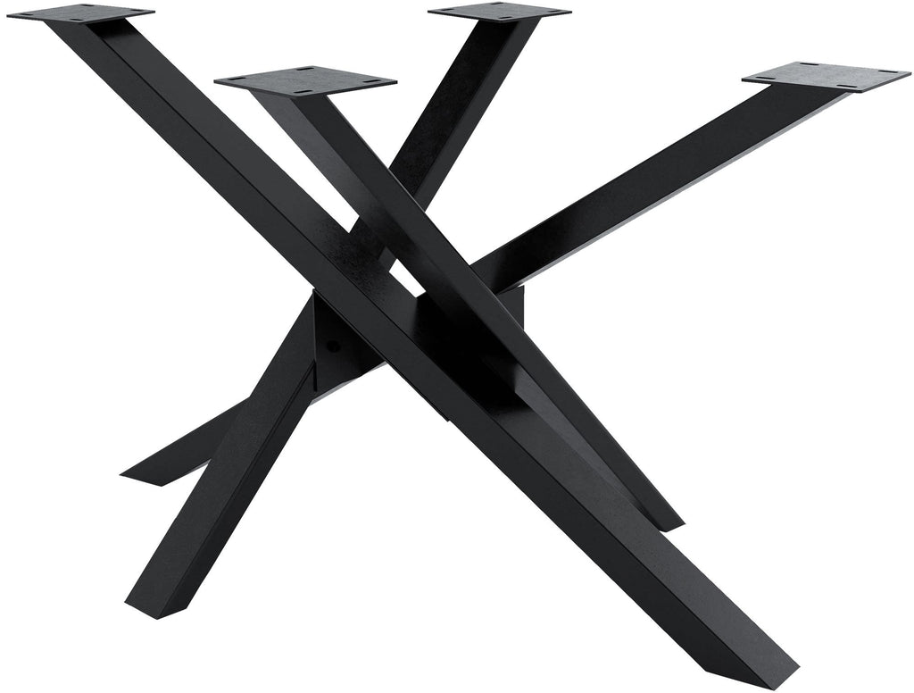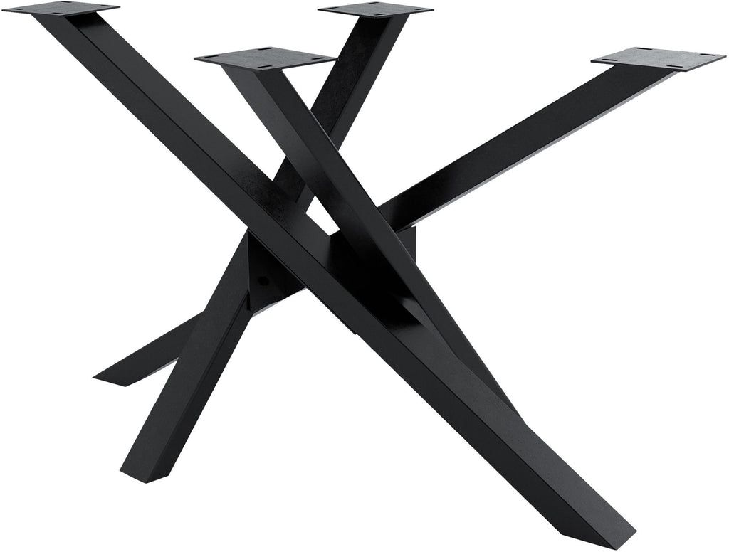 The special look of the table legs opens up a wide range of applications in the living and working areas. This table frame in Mikado shape is ideal for living room and dining room tables, but is also ideal as a base for a conference table. The table runners made of sturdy square profiles are made of high-quality powder-coated steel. The holes for fastening screws are already prepared for easy assembly. In addition, high-quality floor protectors are attached to the feet. These prevent scratches on sensitive floors and allow minor unevenness to be compensated for.