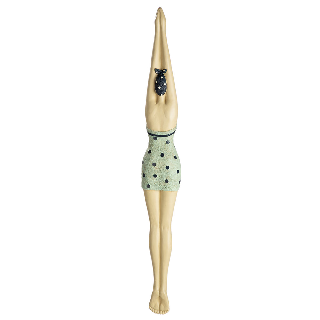 Das Wandobjekt Marella Swim bringt sommerliche Leichtigkeit und maritimes Flair in Ihre Wohnräume. Die stilisierten Frauenfiguren in eleganter Schwimmhaltung erinnern an klassische Badeästhetik und setzen dekorative Akzente mit nostalgischem Charme. Die feinen Details der Badebekleidung in blau und weiß sowie die schlanke, vertikale Form machen dieses 2er Set zu einem besonderen Blickfang an jeder Wand. Ideal für Badezimmer, Flur oder Wohnbereich verleiht dieses Wandobjekt Ihrem Zuhause eine frische, strandinspirierte Note.