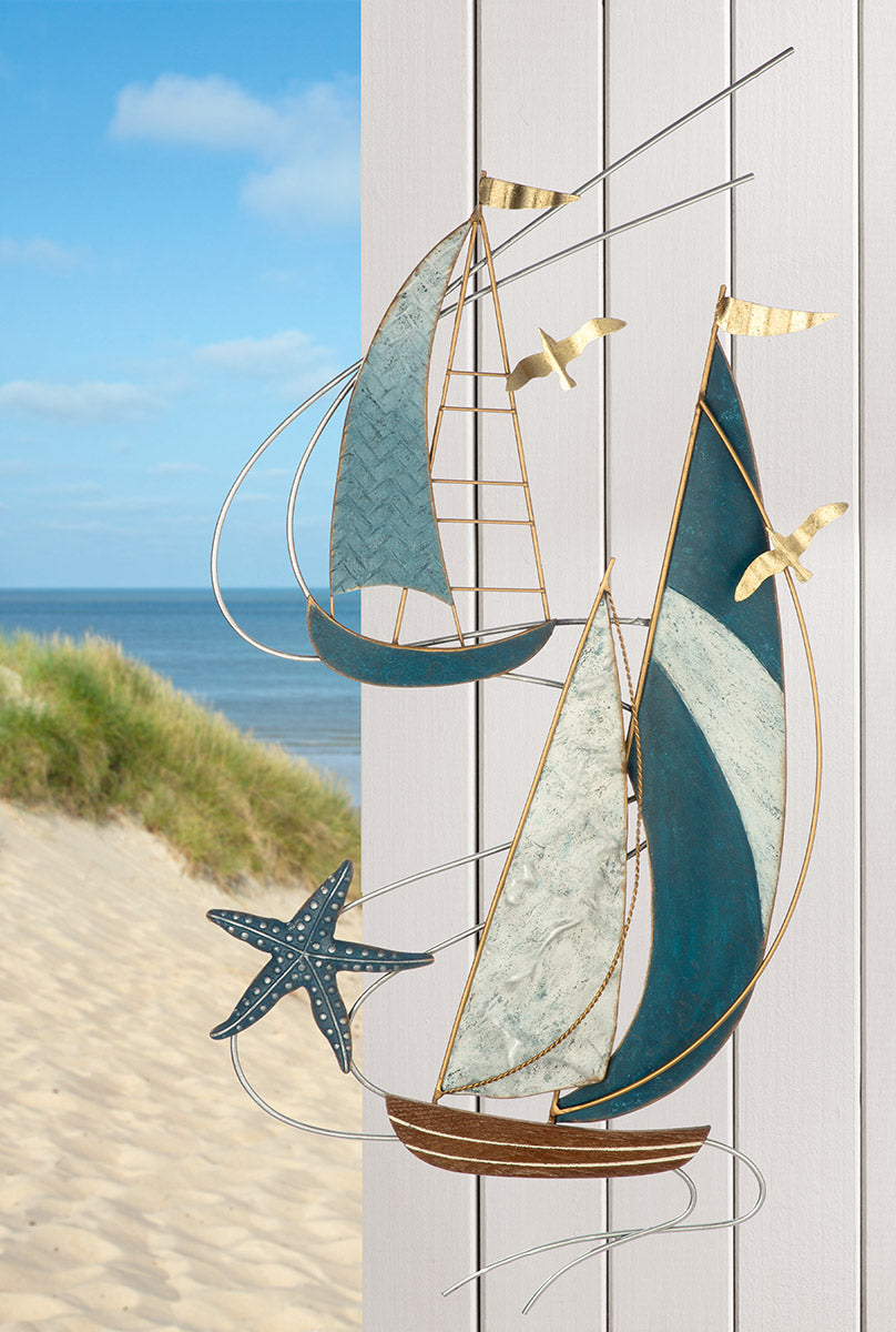Wandrelief Bootstour Metall blau weiß maritim mit Seestern